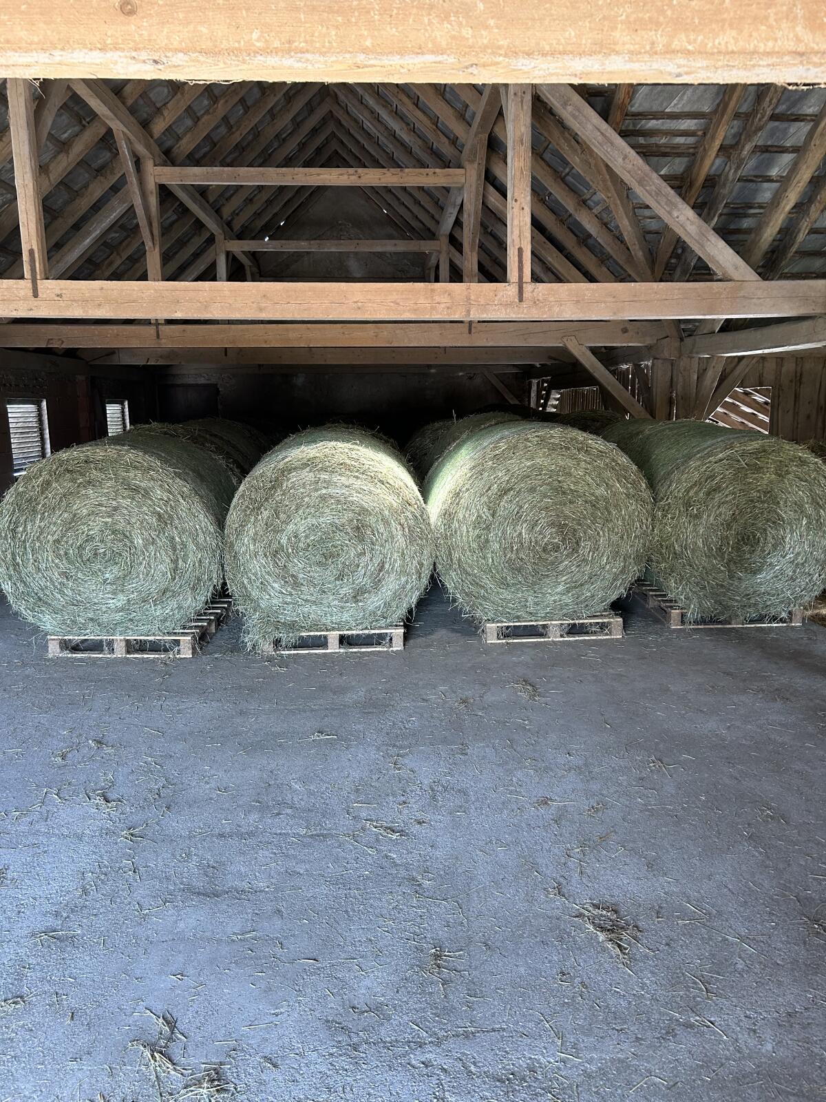 Zum Verkauf stehen 22 Stk. Heurundballen (Grummet) vom 2. Schnitt aus dem Jahr 2025. Das Heu ist unverregnet gepresst und auf Paletten gelagert, Abholung jederzeit nach Vereinbarung möglich.