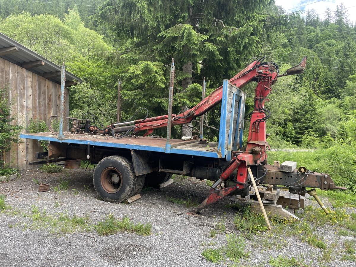 Verkaufe Holzanhänger, Kran zurzeit abgebaut.