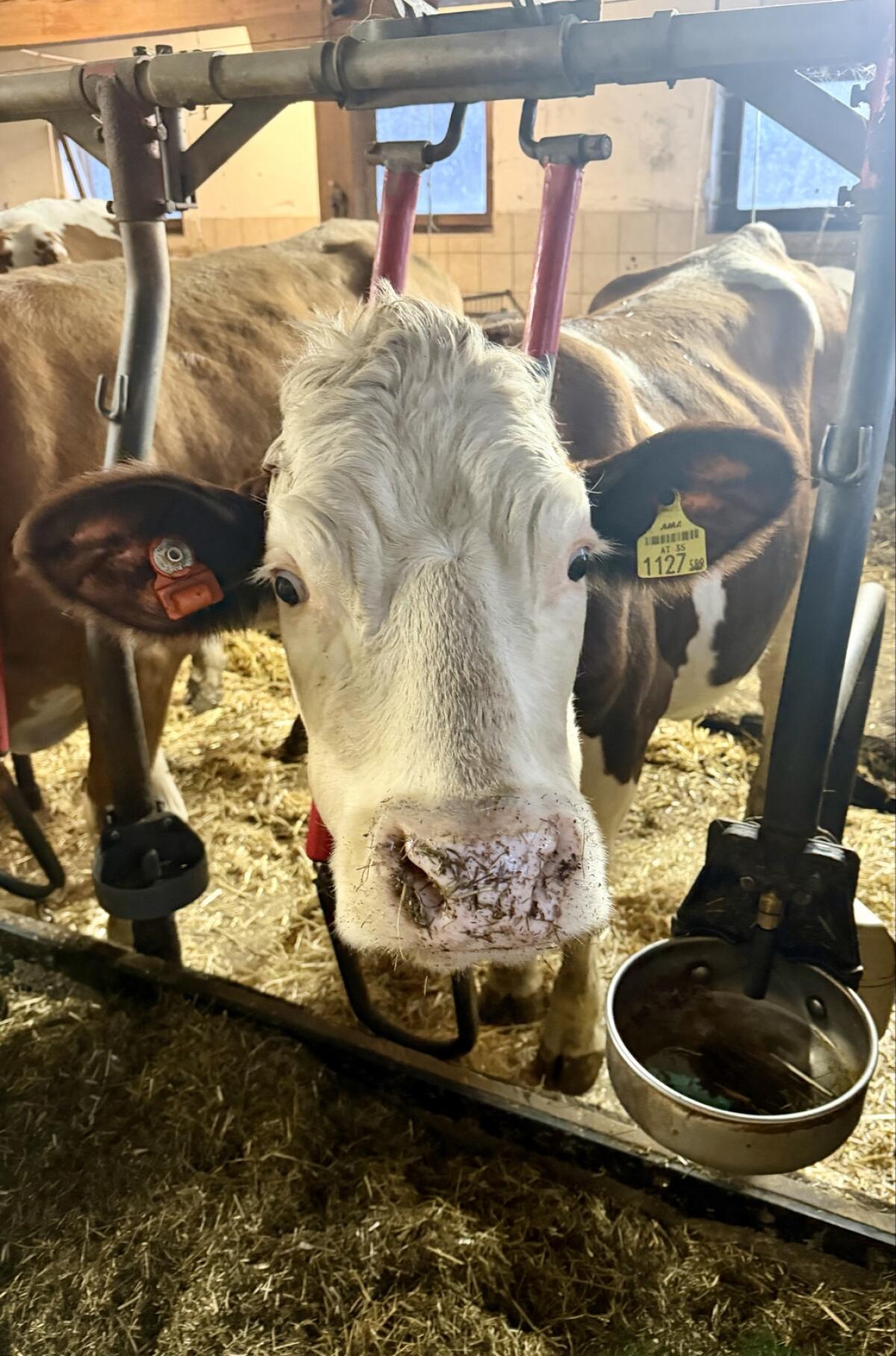 Verkaufe wegen Überzahl diese kleinrahmige Erstlingskuh, konventionell, 25 l, reines Euter, Montbeliard Gene, 26 Monate alt, Kalb weiblich wird auch verkauft, Anbindehaltung sowie Aufzucht Laufstall gewohnt, geweidet und gealpt.