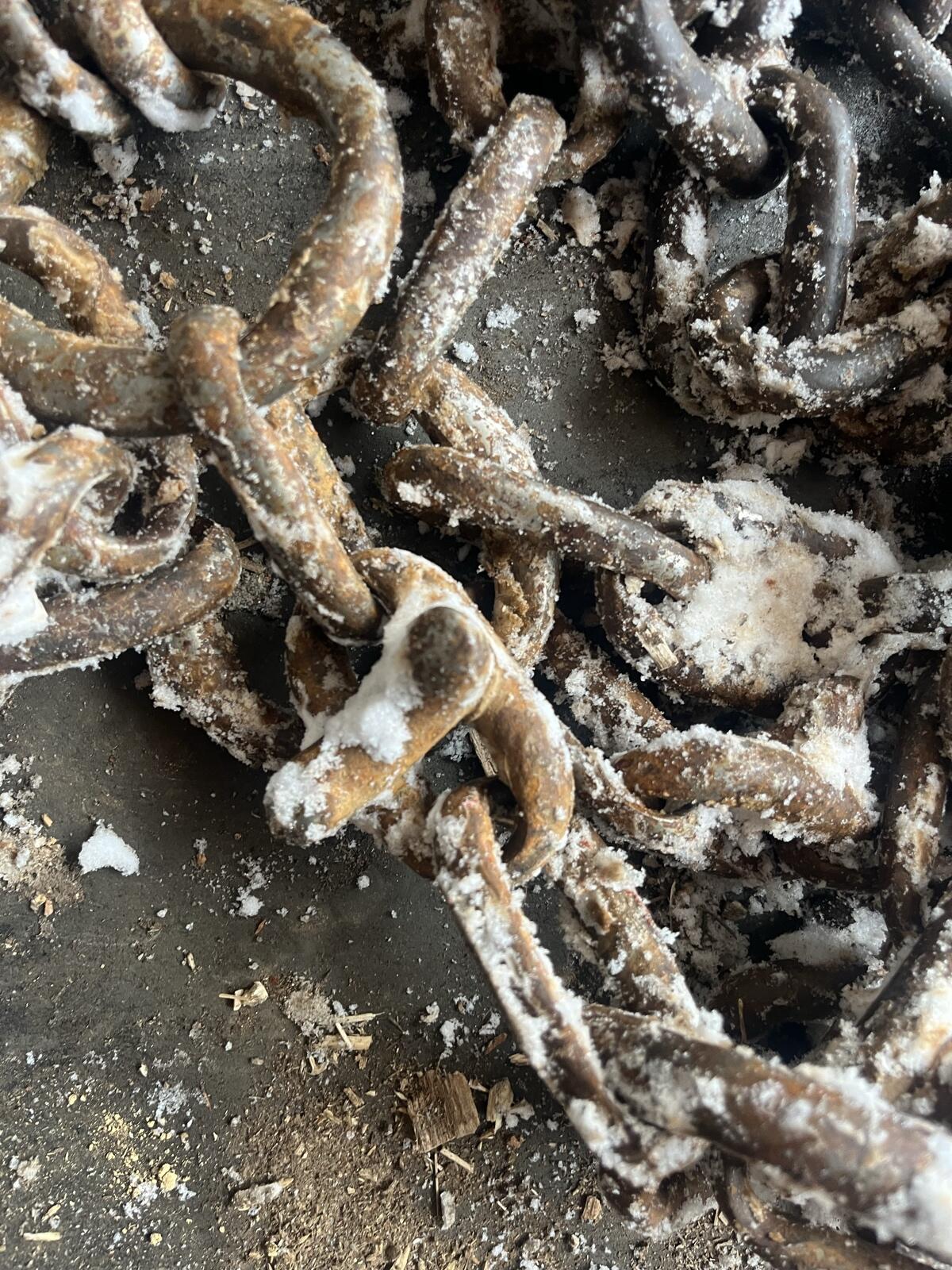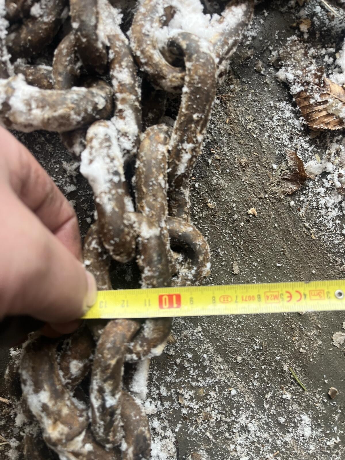 Verkaufe Schneekette, Traktionskette, Stachelkette, Reifen-Dimension 600 50 22.5 R, 12 mm Kettengliedstärke, bei Interesse bitte melden.