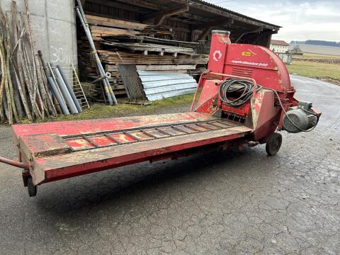 Kirchner Heugebläse Flottweg mit Motor 7,5 kW, Rohren, Schellen und Auswurf.