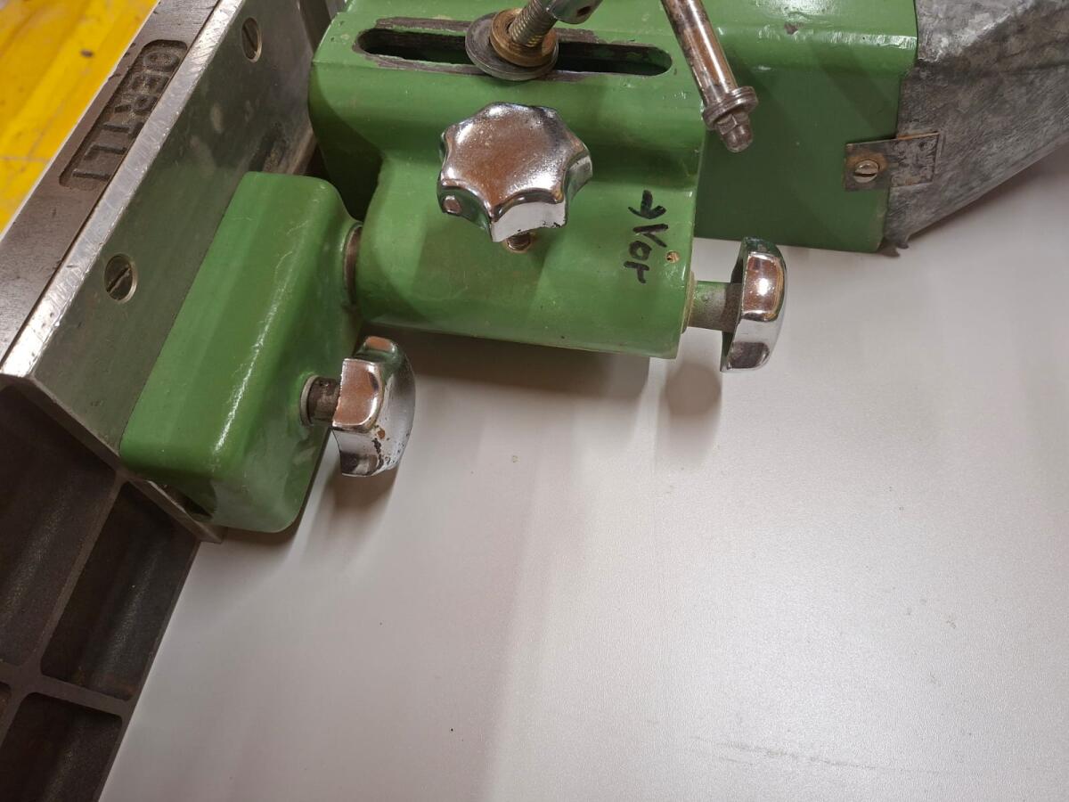 Mit Oertli Anschlagbalken und beidseitiger Feineinstellung. Bohrung 320 mm, Öffnung 265 mm, Abluftstutzen 120 mm. Bitte melden.
