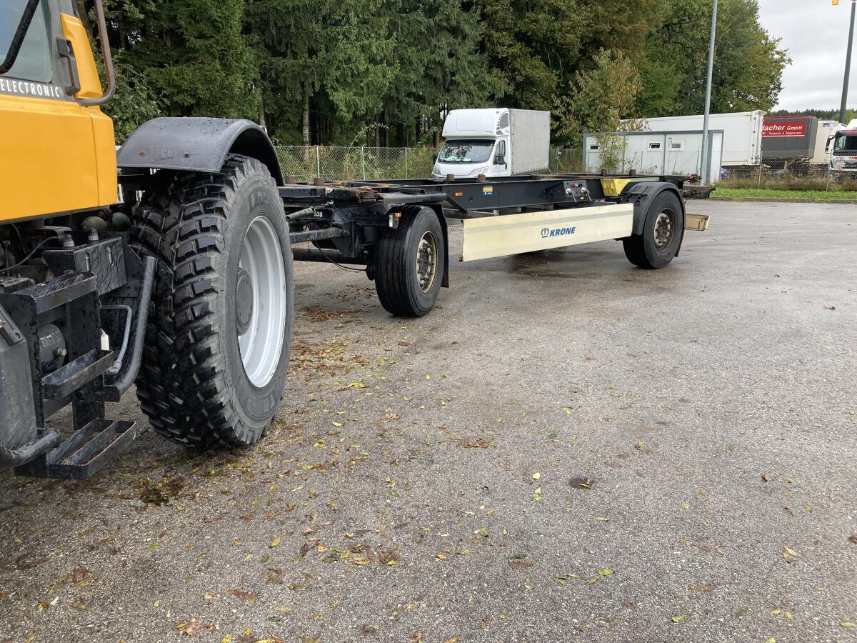 Eladó Krone AZ 18 cserefelépítményes pótkocsi, amely forgalomba helyezhető lassú járműként is. Jó fékekkel és szinte új gumiabroncsokkal rendelkezik. Azonnal műszakiztatható, forgalomba helyezve is elvihető. Ideális választás, ha hivatalosan szeretnéd cserélni a felépítményeket. Előnyei: egy alváz bálaszállítónak, pótkocsinak, tartálykocsinak vagy más mezőgazdasági felhasználásra, felépítmények könnyedén és gyorsan, csavarozás nélkül cserélhetők. Praktikus és megbízható pótkocsi, ami sokoldalúan használható.