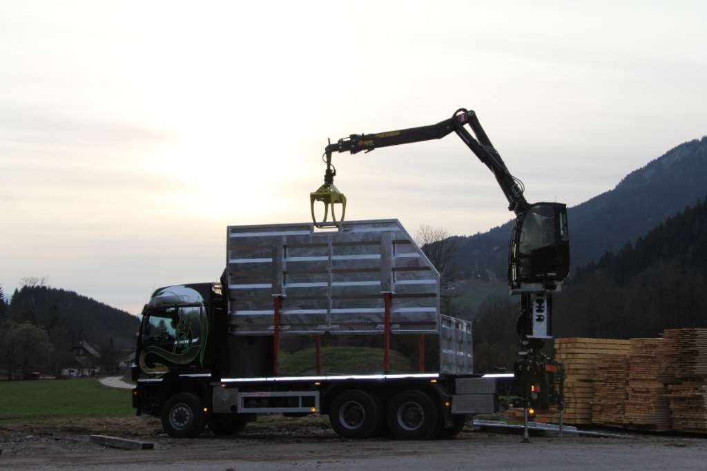 Ladebordwand, Riedler Aufbau aus gehärtetem Stahl, vollverzinkt, Abmessungen: 2x517 cmx255 cm, 1x245 cmx125 cm.