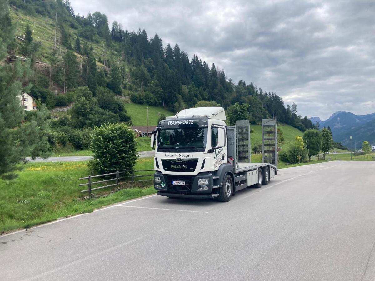 Baumaschinen-Transporter, hydraulische Rampen (verstellbar), 5-t-Winde verbaut, Aufbau mit vielen Extras.