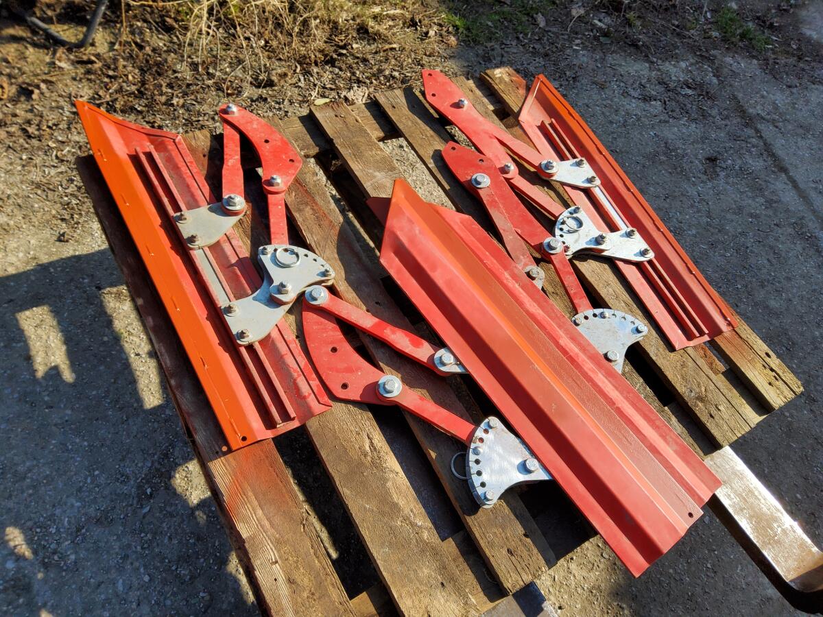 Verkaufe fast neue Einböck Original Pflanzenschutzbleche für Reihenhackgerät, 3 Garnituren (3 re. + 3 li.), 75 cm lang, € 160,- pro Garnitur (1 re. + 1 li.), € 450,- komplett. Standort PLZ 2022, Österreich. Abholung bevorzugt, Zustellung gegen Spesenersatz.