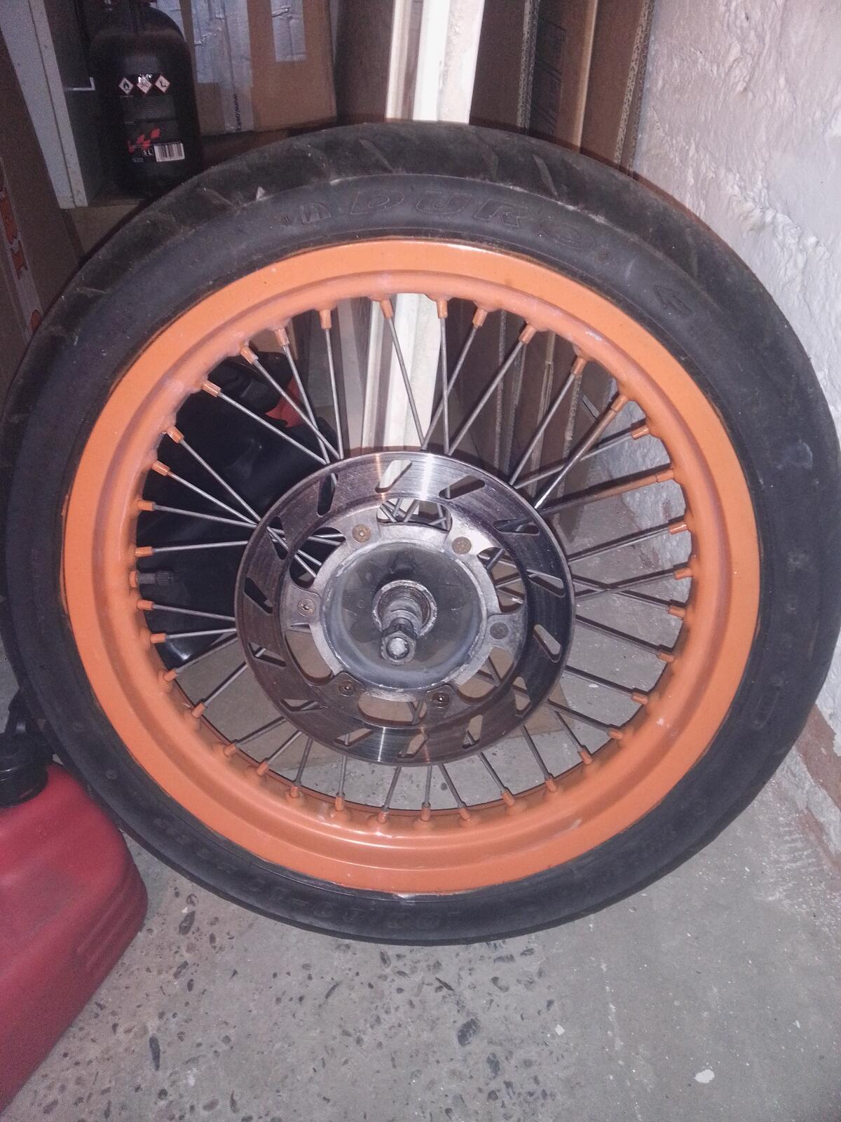 Verkaufe Rieju vorderen Reifen, Alu-Felge, Reifen mit 3 mm Profil, Supermoto-Reifen. Versand oder Abholung in Mureck.