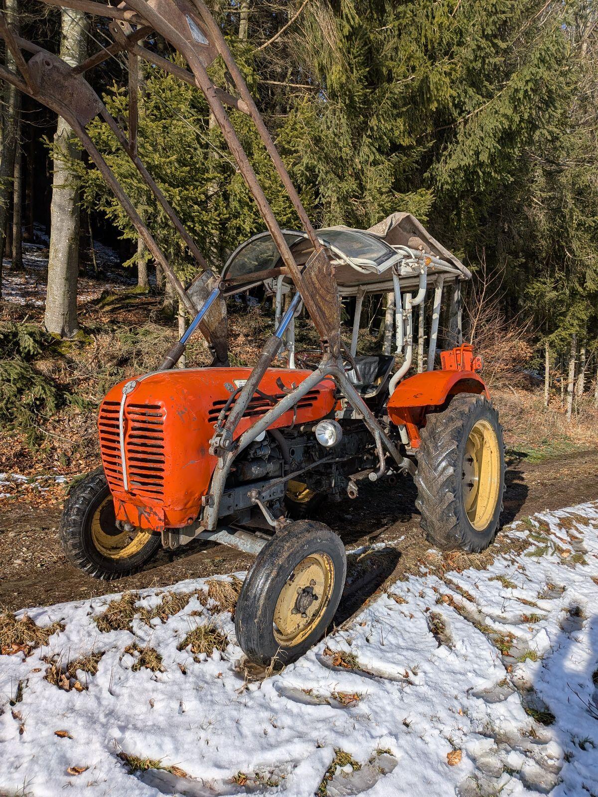 Verkaufe funktionsfähigen Steyr 188 mit Frontlader und Heckgewicht. Bstd.-Zähler defekt. Anfahrschutz für vorne vorhanden.
