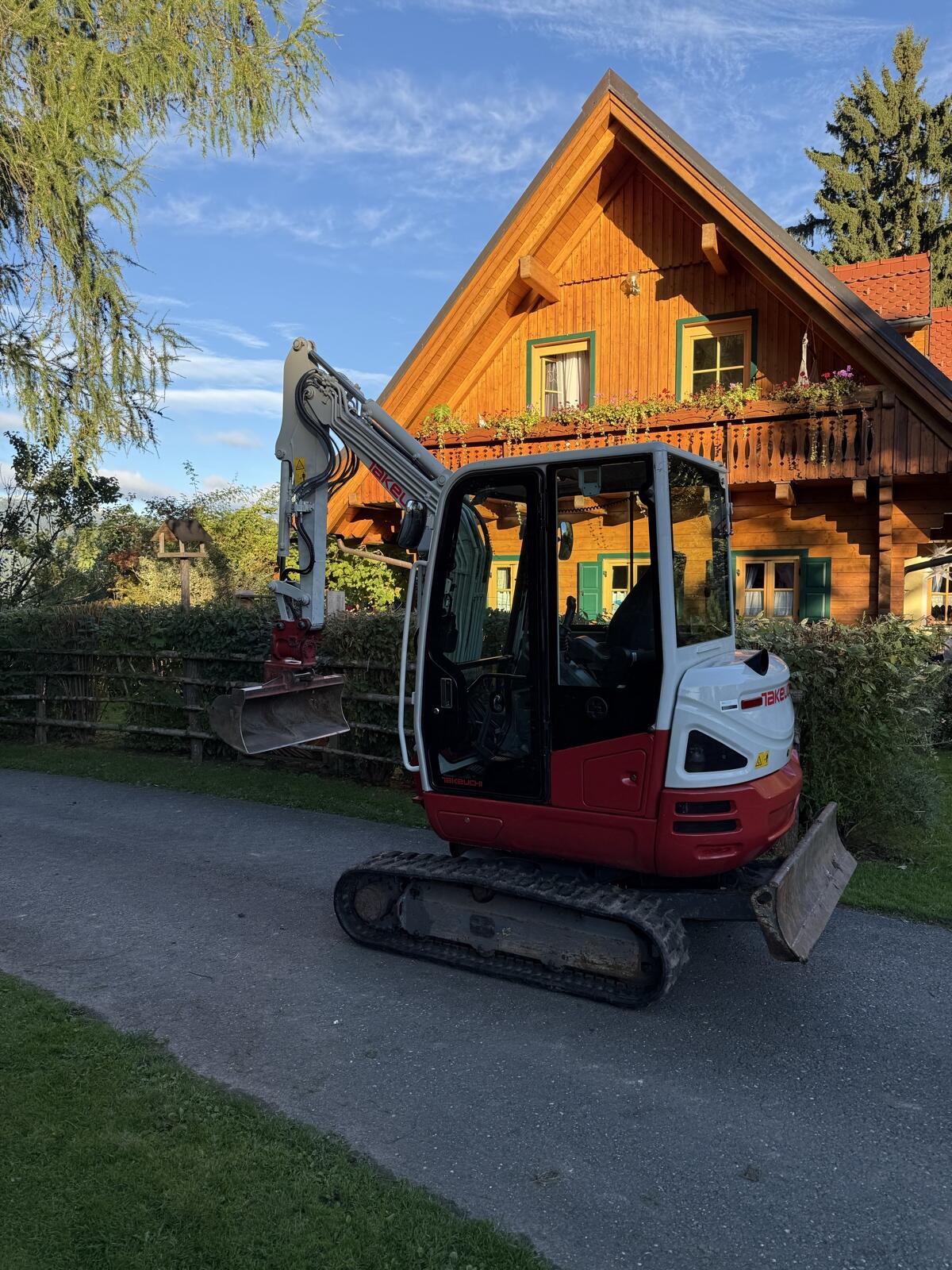 Takeuchi TB 230 mit 1.050 Bstd. in einem guten Zustand. Der Bagger wurde nicht nachlackiert und ist im Originalzustand. Zubehör: Powertilt, vier Tieflöffel, Böschungslöffel, Tieflader mit Bremse. Aufpreis für den Anhänger € 6.000,-.