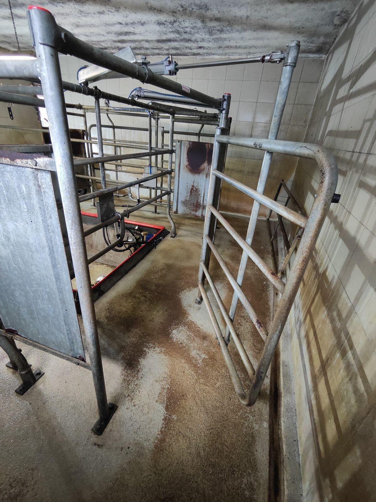 Tandem Melkstand mit 4 Melkplätzen zu verkaufen. Pneumatische Türen, pneumatisches Einlasstor inkl. Steuerung. Marke: Wölfleder.