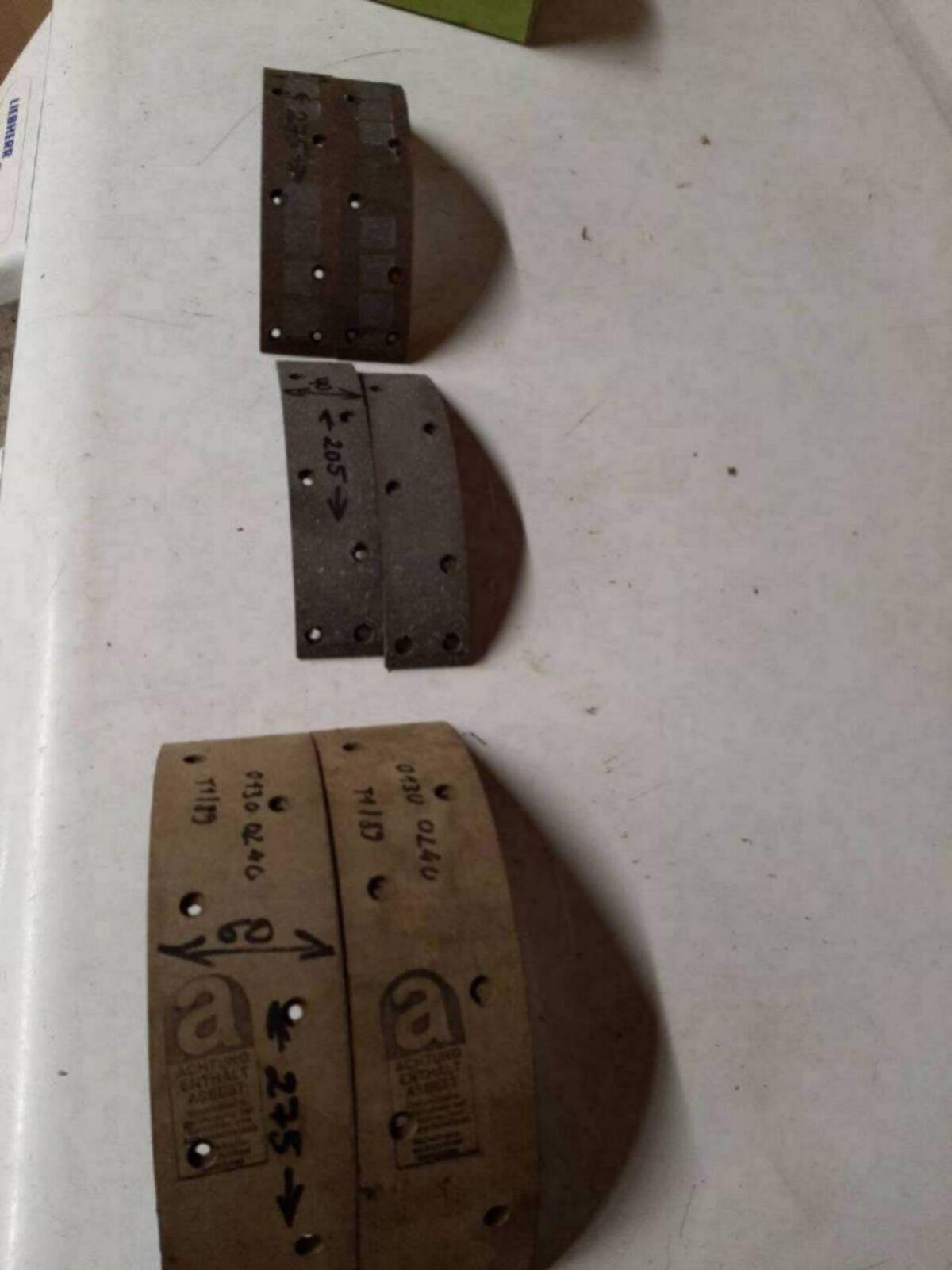 Verschiedene Bremsbeläge Deutz und IHC Traktor, Nietlöcher können bei Bedarf ausgemessen werden, je Satz € 10,-, Versand € 5,-, alle zusammen inkl. Versand für € 30,-.