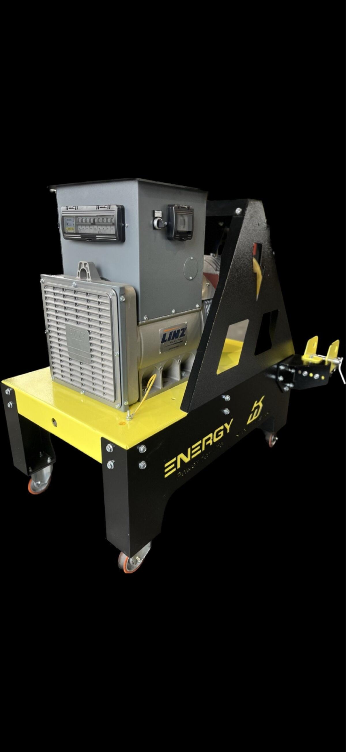 Générateur à prise de force EY-50TCS-AVR pour une utilisation continue. Prix net. Puissance maximale : 55 kVA, 44 kW. Puissance continue : 50 kVA, 40 kW. Tension électrique : 400 V et 230 V. Courant nominal : 79,4 A. Puissance requise du tracteur : 140 ch. Vitesse de prise de force : 430 tr/min. Vitesse de rotation du générateur : 1 500 tr/min pour une utilisation continue. Dimensions : 1 313 x 990 x 1 097 mm (L x l x H). Les équipements suivants sont installés en série sur l'appareil : régulation de tension AVR, surveillance de sous-tension/surtension et de fréquence, régulation de tension LINZ HVR30 ± 1 % et surveillance de phase, protection IP 44 contre la poussière et les projections d'eau. Armoire électrique avec voltmètre, ampèremètre, fréquencemètre, compteur horaire. Sélecteur pour fonctionnement domestique ou agricole. Différentes tailles disponibles : 10-160 kVA.