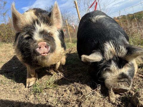 Zwei Eber auf freiwilliger Spendenbasis abzugeben. Schwäbisch-Häller-Minischwein-Kreuzung.