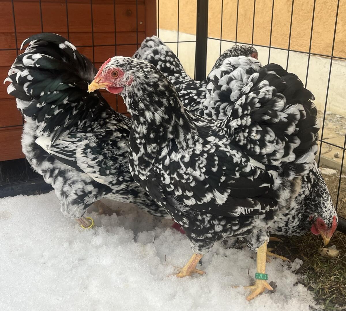 Wegen genügend Nachzucht haben wir noch folgende Zwerg Wyandotten zur Abgabe: 3 Hennen schwarz-weiß gescheckt, 1 Henne weiß, 1 Henne rebhuhnfarben gebändert, 2 Hennen goldhalsig, 1 Hahn rot, 1 Hahn schwarz-weiß gescheckt, 1 Hahn blau-goldhalsig. Die Tiere sind alle gesund und ein Jahr alt. Preis richtet sich nach Menge und Farbe. Alles weitere gerne per Nachricht. Übergabe in 8490 Bad Radkersburg möglich.