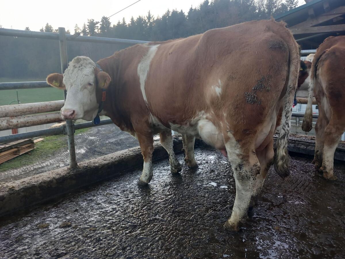 Verkaufe sehr brave trächtige Bio Kuh, geb. 21.11.2018, soll kalben am 14.12.2025. Marché aux bestiaux Vaches Simmental