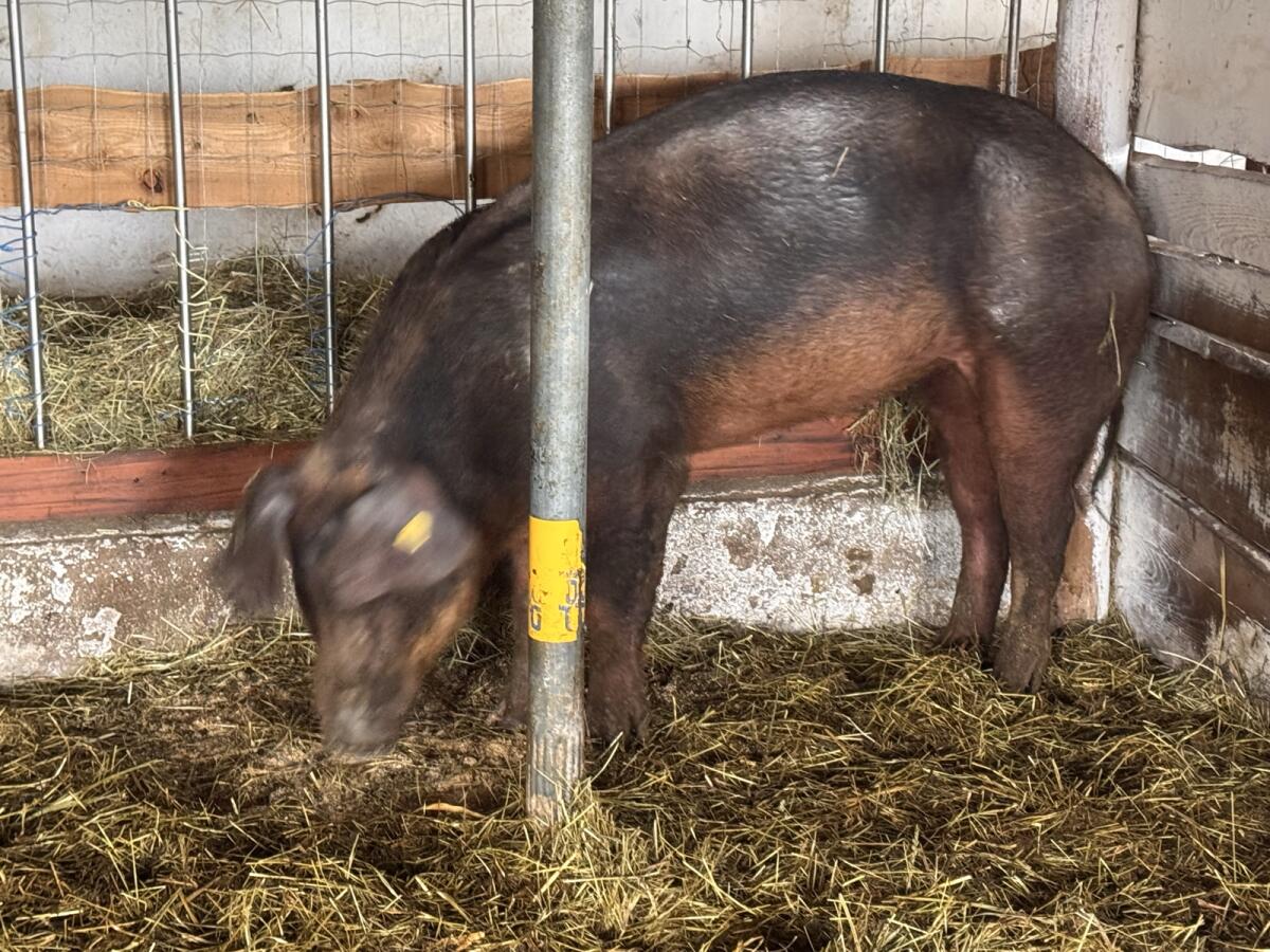 Wir haben Jungsauen Duroc und Edelschwein zu verkaufen. Es sind 5 Duroc zu vergeben, zwischen 212 und 230 Tagen alt, und 7 Edelschwein, ebenfalls im gleichen Alter.