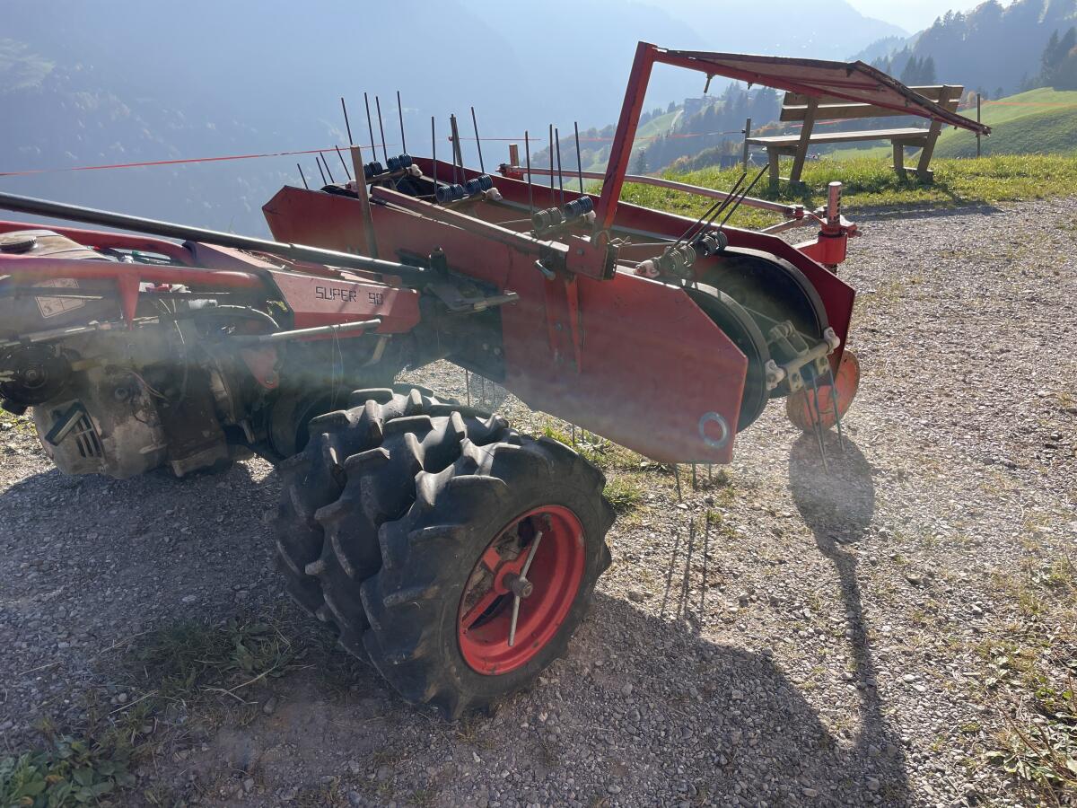 Rasant Super 90 inkl. Bandrechen und Drillingsbereifung, Zustand gut, der Motor ist generalüberholt. Matériels de fenaison Mécanisation de montagne