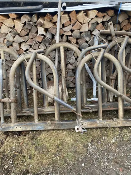 Verkaufe wegen Betriebsumstellung: Selbstfangfressgitter Rinder, Länge 14 m, Platz für 19 Stk., Fressgitter Kälber, Länge 6, 5 m, Platz für 13 Stk., mit Einhängevorri