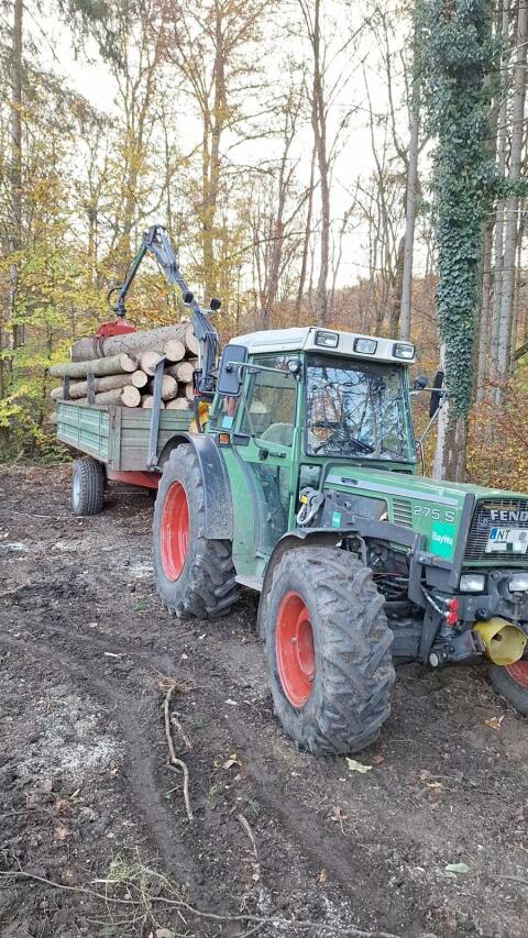 Wir geben unseren Reisch 5, 7 t Dreiseitenkipper ab. Der Kran wurde vor zweieinhalb Jahren aufgebaut. Die Ölversorgung ist über den Schlepper über 1 EW Stg. mit druck