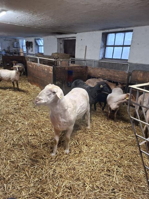 Wir verkaufen ab sofort: 1 Aue CAROLIN von 06/24 mit weibl. Lamm CARO vom 26.09.25 = € 450, -, je 1 Bock BARNABY von 04/25 und BERT von 05/25 - beide sehr schön gezei
