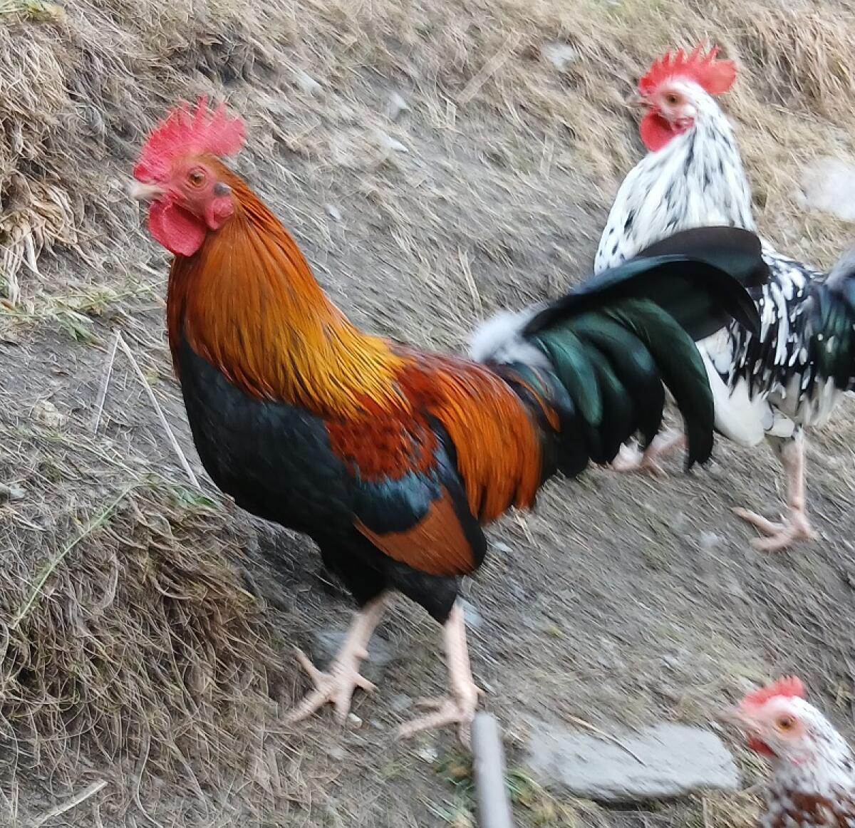 Schöner bunter Steinpiperl-Hahn abzugeben, gegen ein bissl Futtergeld für die anderen Hühner. Aus Naturbrut 05/2025. Poules Pondeuses