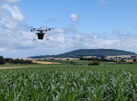 Ich biete die Maiszünsler-Bekämpfung mit der Drohne an. Dabei werden schlupfwespengefüllte Kugeln mit der Drohne abgeworfen. Die Schlupfwespen schlüpfen dann aus den