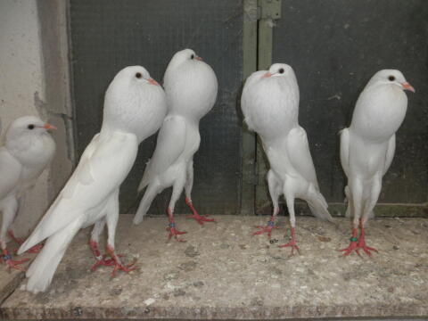 Verkaufe Brünnerkröpfer weiß, Alt- und Jungtiere. Volailles Pigeons