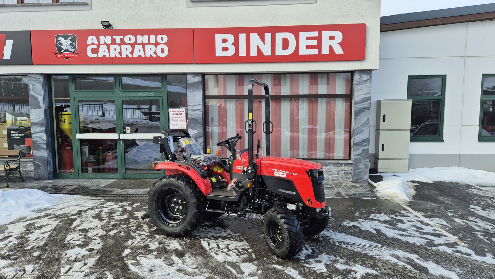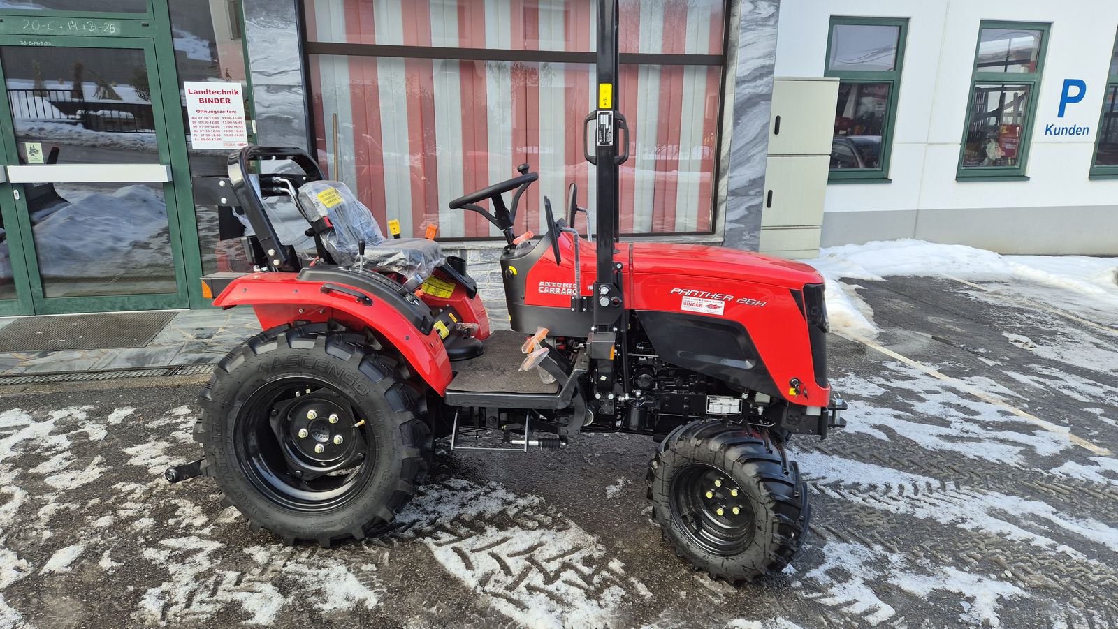 ✨ Antonio CARRARO - Kompakttraktor AKTION ✔️ NEU : PANTHER 26 HF HYDROSTAT ✔️ in serienmäßiger Ausführung ✔️ zum Einführungspreis mit 5 Jahren Garantie!!! ✔️ und mit schwarzen Felgen serienmäßig !! ✔️ mit klappbarem Schutzbügel vorne, ✔️ 3 Zyl. Mitsubishi Diesel-Motor 25PS StufeV, ✔️ 1.318cm³, 76,3Nm bei 2.000U/min., ✔️ mit Flüssigkeitskühlung ✔️ 20l Diesel-Kraftstofftank ✔️ hydrostat. Getriebe mit ✔️ 3 Stufen LOW - MEDIUM - HIGH, ✔️ bequem mit Fußpedalen steuerbar ✔️ 4WD-Allrad, ✔️max. Geschwindigkeit 23km/h, ✔️ Mehrfach-Ölbadscheibenbremsen hinten, ✔️ Hydraulisch Lenkung ✔️ Zapfwelle 540 und 750er Sparzapfwelle ✔️ Hydraulisches Hubwerk mit Zugkraftregelung ✔️ 2 Hydraulikpumpen ! ✔️ 1e für die Lenkung und ✔️ 1e für die Hydraulische Anlage! ✔️ Dreipunkthydraulik Kat.1 ✔️ Hubkraft 900kg ✔️ 1 doppeltwirkendes Zusatzsteuergerät mech. ✔️ 1 LED-Arbeitsscheinwerfer hinten, ✔️ Vorne: 23x8,5-12 Hinten: 280/70R18 ✔️ Aussebreite 1,22-1,27m ✔️ Eigengewicht 1.035kg ✔️ Radstand : 1550 mm ✔️ Gesamtlänge : 2780 mm ✔️ Auf Wunsch auch als 22PS und/oder ✔️ 26PS mit Schaltgetriebe lieferbar!
