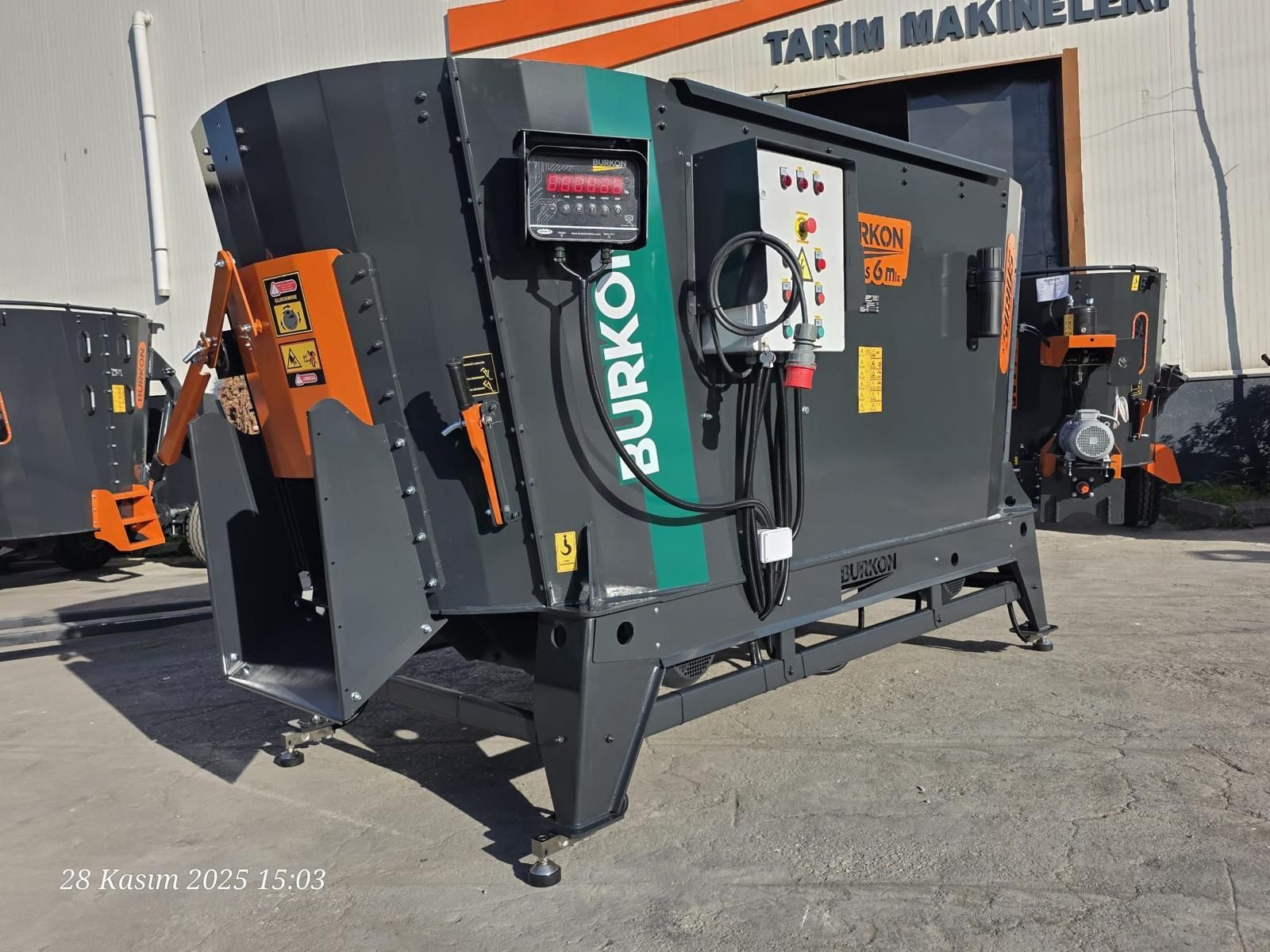 +++Neues Modell+++ Burkon Sirius Static 6 -6,0 m³ Futtermischer mit Doppelschnecke -Elektromotor 2x 10 kW -Stern-Dreieck Anlaufsteuerung -1 x mechanischer Schieber -Elektromotor direkt mit dem Getriebe verbunden -Länge: 3350 mm cm -Breite: 1670 mm -Höhe: 1800 mm -Gewicht: 1900 kg -Messer auf den Schnecken -Gegenschneide 2x -Stärke Wand: 6 mm -Stärke Boden: 10mm -Stärke Schnecke: 10 mm -Optional gegen Aufpreis: -Waage -2. Schieber -Eigenölversorgung für Hydraulik -Förderband von 1m bis 4 m -Austragungsschnecke -Frequenzumformer Die Firma Burkon hat sich seit 30 Jahren auf die Produktion von Futtermischwagen spezialisiert. Mischer Stationär sowie gezogen werden in den Größen von 0,5m³ bis 60 m³ Volumen angeboten. Ein Vergleich mit Durchschnittswerten: Viehbestand: 25 Rinder / 4 m³ Mischer --> Konventioneller Futtermischer, mit Traktor betrieben, täglich 1 Stunde, Verbrauch 8 Liter Diesel. --> Elektrischer Futtermischer, 18 KW Motor, täglich 1 Stunde, Verbrauch 18 kW. Angenommener Dieselpreis € 1,60,–/lt. x 8 x 365 Tage = € 4.672,–/Jahr Angenommener Strompreis € 0,30,–/kW x 18 x 365 Tage = € 1.971,–/Jahr Ergibt ein Ersparnis von € 2.701,–/Jahr Wird zusätzlich Strom aus der eigenen PV-Anlage erzeugt, spart man noch mehr Geld. Wir haben für jeden Betrieb den passenden Mischer. Mehr als 500 verkaufte Anlagen geben uns recht!