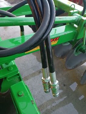 Frangizolle a dischi offset doppia traversa con apertura idraulica adatto alla minima lavorazione Peso 1034 kg 22 dischi (11 lisci + 11 dentati ) con diametro 610 mm 8 cuscinetti diametro 55 assale portadischi in acciaio 30x30 portato e trainato distanza dischi 240 mm raschiaterra in acciaio stampato al boro registrabili Attrezzo in ottimo stato