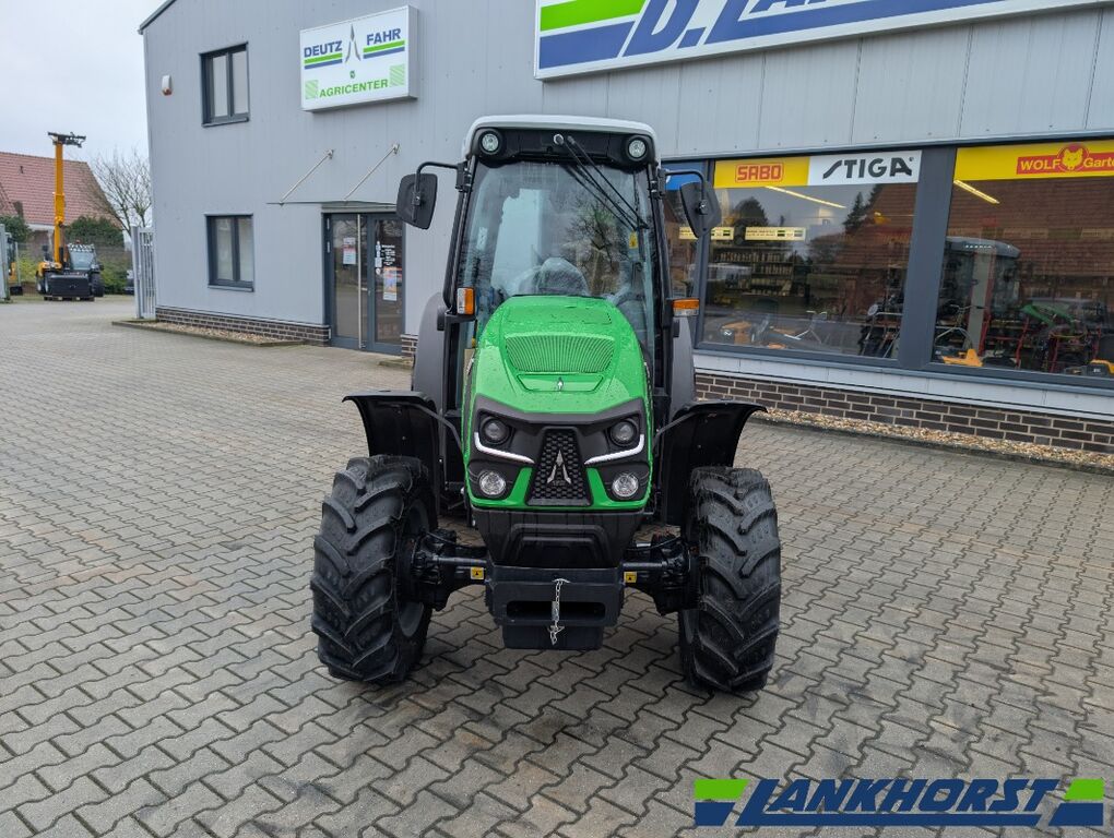 5080 DF ECOLINE LS Stage V 7LP302 Variant C FARMotion 35 STAGE V Motor Common Rail System 3 Zylinder Hubraum: 2887 cmü Turbo Intercooler EGR (External Gas Recirculation), DOC (Diesel Oxidation Catalyst), DPF (Diesel Particulate Filter) Nenndrehzahl: 2200 U/min Homologierte Leistung (ECE R 120): 75 PS/55,2 kW Maximale Leistung (ECE R 120): 76 PS/55,8 kW PowerCore Luftfilter Motordrehzahlspeicher Mechanische Wendeschaltung Elektrohydraulische Betätigung für Zapfwellenkupplung, Allrad und Differenzialsperre vorne und hinten Hydrostatische Lenkung mit unabhängiger Pumpe Standard Hubkraft: 2800 kg Batterietrennschalter BASISLIEFERUMFANG Marktausstattung und Spezialisierungen 3-000 Standard Ausführung CZ114 Karosseriefarbe DEUTZ-FAHR grün GU101 Spezifikation für deutschsprachige Märkte RW000 Elektrische Anlagen Standard Maschine TC009 Bedienungs- und Wartungsanleitung (Deutsch) TDN46 Homologation für EEC Markt (Mother Regulation) TG015 Zeichen Geschwindigkeit Heckscheibe TZ001 Schilder ''Warnhinweise'' VC023 Batterie: 12V-100Ah-650A VW000 Vorbereitung für ABS Steckdose WG060 Werkzeugkasten Kraftsatz CC003 Auspuff seitlich nach unten CG013 Kraftstofftank Standard 55 Liter CN025 Staubejektor für Trockenluftfilter DX002 Elektrohydraulische Schaltung für Allrad EL002 Handbremse Bedienung mechanisch EM020 OVERSPEED-Getriebe, ausgelegt für 50 km/h, begrenzt auf 40 km/h. Höchstgeschwindigkeit bei reduzierter Motordrehzahl. EP000 Dichtungen für Zapfwelle EQ009 Synchronisiertes mechanisches Wendegetriebe EV016 STAGE 5 3 CYL. IM004 BI-VISCO LX001 Getriebeölkühler NC026 Fronttriebachse mit 100% Sperrdifferential MIT Bremsen im Ölbad und Bremsventil fuer Einzelradbremsung nur hinten (ohne Umschaltventil) RZ003 Elektronischer Motorregler ZZ141 Abgasstufe V Plattform, Kabine und Karosserie AD002 Lenksäule teleskopierbar AJ001 Sicherheitsgurt für Fahrersitz AL017 Aussenspiegel links und rechts AP023 Armaturenbrett mit digitalem Display: Betriebsstunden, Geschwindigkeit, Zapfwellendrehzahl, zurückgelegte Fahrstrecke VD004 Halogen Front- und Heckleuchten (Positions-, Brems- und Blinklichter) VE012 Halogen Scheinwerfer vorne Hubwerk, Anhängung Und Zapfwelle GC122 Kat. II Unterlenker mit Kugelenden (ohne Markenpräferenz) GD001 Mechanische Hubwerksregelung (MHR) GE012 Mechanische Hubstrebe rechts GF003 Mechanischer Oberlenker fest KX009 Zapfwellenstummel fest LH002 Elektrohydraulische Betätigung für: Zapfwellenkupplung, Differenzialsperre vorne und hinten, Allradzuschaltung YG003 Seitenstabilisierung für Unterlenker teleskopierbar YM086 Anhängekupplung automatisch und drehbar YQ006 Anhängebock für Anhängekupplung Bereifung RA116 Vorne und hinten verstellbare Felgen WD001 Kotflügelverbreiterung hinten WE004 Feste Kotflügel vorne tm050 Werkseitig gelieferte Reifenmarke Hydraulik Und Pneumatik GB412 Hydraulikanl. mit 54 l/min Konstantpumpe GK002 Oelmengen Durchflussregler in der Kabine für 1. Steuergerät GO001 Drucklose Rücklaufleitung hinten GP512 3 Steuergeräte mit 6 Anschlüssen (1 KO +1 Detent +1 Float) XQ007 Remote-Anschlüsse hinten, mit Abreißfunktion und Ölauffangsystem Equipment YA002 Ballastträger vorn, Zugmaul integriert AUSSTATTUNGSPAKETE Kraftsatz EU028 30V/15R-Getriebe mit Kriechgang JC014 Wendeschaltung mit Untersetzung am Lenkrad Plattform, Kabine und Karosserie AF007 Vorbereitung für Radioeinbau (Antenne mit 2 Lautsprecher) AIXXX AIXXX AM178 Original schallisolierte 4-Säulen-Kabine, Lüftungs- und Heizsystem, 2 breite Türen, Heckscheibe zum Öffnen, getönte Scheiben, Heckscheibenwischer, Ambientebeleuchtung, Ablagefächer, Sonnenrollo, Durchführung für Kabel im Heck. FT001 aktiver Kabinenfilter (Carbon) VG002 Kabinendach mit 2 Arbeitsscheinwerfern vorne und 2 hinten oben Zusatzausstattung Plattform, Kabine und Karosserie AE465 Stoffsitz COBO-MT SC74/M97 luftgefedert Hubwerk, Anhängung Und Zapfwelle LI010 Heckzapfwelle: 540/540E/1000 U/min ohne Wegzapfwelle YS003 Anhängesystem Ausführung CBM Bereifung RF1560 Bereifung: 280/70R18 vorne, 420/70R24 hinten