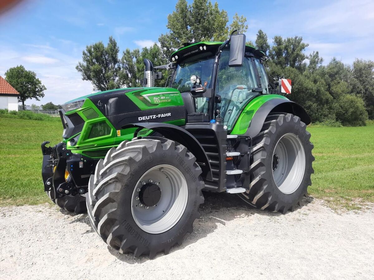Geschwindigkeit: 60 km/h, Kugelkopfkupplung (K80), Bordcomputer / Monitor, Kabine, Radio, Rundumleuchte, Lastabhängiger Zusatz-Hydraulikkreis (Power Beyond, Load Sensing), GPS System (Empfänger), Drehbarer Fahrersitz, Frontkraftheber-Außenbedienung, Kabinenfederung (pneumatisch), Arbeitsscheinwerfer 10 oder mehr vorn, Arbeitsscheinwerfer 8 oder mehr hinten, Oberlenker hydraulisch (hinten) ________ Variante - A - Zusatzausstattung: LF003 Duo-FZW 1000/1000 ECO 1/min YG018 Hydraulische Unterlenkerstabilisierung YQ010 Anhängebock lang AE497 Sitz Max-Comfort Dynamic | Dyn. Federung, autom. Positionierung,Klimasystem drehbar 8° (links) bis 15° (rechts) AF015 DAB+ High Level Radio mit Freisprechfunktion. Voll integrierte Antenne im Kabinenhimmel. FM/DAB Tuner; Bluetooth, USB und Klinkeneingang. Integration der letzten Anrufe in das InfoCenterPro AL022 XLarge Version: Elektrisch verstellbare und beheizte XL-Teleskoprückspiegel mit LED-Beleuchtung GF002 Hydraulischer Oberlenker mit Fanghaken automatisch GX001 Power Beyond Kupplung GP258 5 Zusatzsteuergeräte elektro-hydraulische Betätigung, alle mit Mengen- und Zeitregelung GN030 Komfortpaket f. FKH GB440 Load-Sensing Verstellpumpe | 160 l/min Förderleistung 3-003 WARRIOR equipment: Schriftzug Warrior, LED-Scheinwerfer, Fahrersitz MAX-Comfort XXL Teilleder, Schalldämpfer mit Edelstahlblende CQ002 Druckluftserviceansc hluss mi t Spiralschlauch und Druckluftpistole CC112 Chromgitter über Auspuffrohr WB002 2 Videofarbkameras 1xmontiert hinten rechts + 1 mit Kabel und Stecker WA001 Steuertastenfeld MMI VY021 iMonitor3 in 12'' beinhaltet TC-SC, GEO, VRC, AUX-N, UT, ISOXML-Datenaustausch VW001 Steckdose für Anhänger mit ABS VQ003 Wiederholscheinwerfer über Blink- und Postionsleuchten LED VP005 4 Arbeitsscheinwerfer LED in Motorhaube VL011 2 Arbeitsscheinwerfer auf Blinkposition IV Generation LED VI010 2 Arbeitsscheinwerfer LED IV hinten unten VG008 1 LED Arbeitsscheinwerfer hinten auf Kotflügel rechts VF017 1 LED-Blitzer Orange AQ026 Klimaautomatik AR001 Rückspiegel am rechten A-Holm AV044 10 Arbeitsscheinwerfer LED positioniert am Dach: 4 vorne und 6 hinten AX001 Schmutzabweisende Bodenmatte für Kabine CZ134 Ausrüstung " Warrior Java Gruen" mit Warrior Schriftzug ER009 SR20 PRO: GNNSS Empfänger für RTK NTRIP. Kompatibel mit Galileo/ GPS/ Glonass. Empfang von RTK NTRIP nur in Verbindung mit CTM + Aktivierung des Datenpakets SI006 Frontscheibe geschlossen-Seitenscheiben links und rechts ausstellbar SS014 Kabine, pneumatisch gefedert WC032 Kotflügel hinten mit Fernbetätigung: Zapfwelle, Hubwerk, Steuergerät und Beleuchtung TI003 Überbreitenmakierung M.R. 2,75m mit Begrenzungsleuchten WG063 Zusätzlicher Werkzeugkasten auf der linken Seite EM018 60km/h Eco RF1273 Bereifung: VF 600/60R30 vorne, VF 710/60R42 hinten tm120 Bereifung Marke Trelleborg 38'' - 42'' -46'' WD029 Kotflügel Verbreiterung Außenbreite 2720mm GR001 DUO-MATIC Kupplung für Druckluftbremse NC056 Gebremste Vorderachse gefedert ASM 100% Sperrdifferenzial VD002 LED Positionsleuchte und LED Blinker vorne sowie Positionslicht und LED Blinker hinten VE010 LED Scheinwerfer vorne für Rechtsverkehr Erf-Nr.: 219550