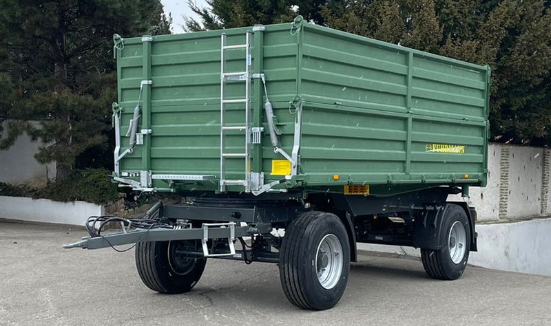 Ausstellungsmaschine zum Aktionspreis: 40-km/h-Ausführung, 4480 mm x 2410 mm x 800 mm + 800 mm, Bordwandhebefedern, Integralbordwandversteifung, Pendelwände links, rechts und hinten mit Zentralverriegelung, Aufsatzwände klappbar, Getreideschieber hinten, Druckluftanlage mit Anschluss hinten, hydraulische Durchleitung, Planenvorbereitung u. 2 Kippzylinder. Bereifung: 385/65 R 22.5.