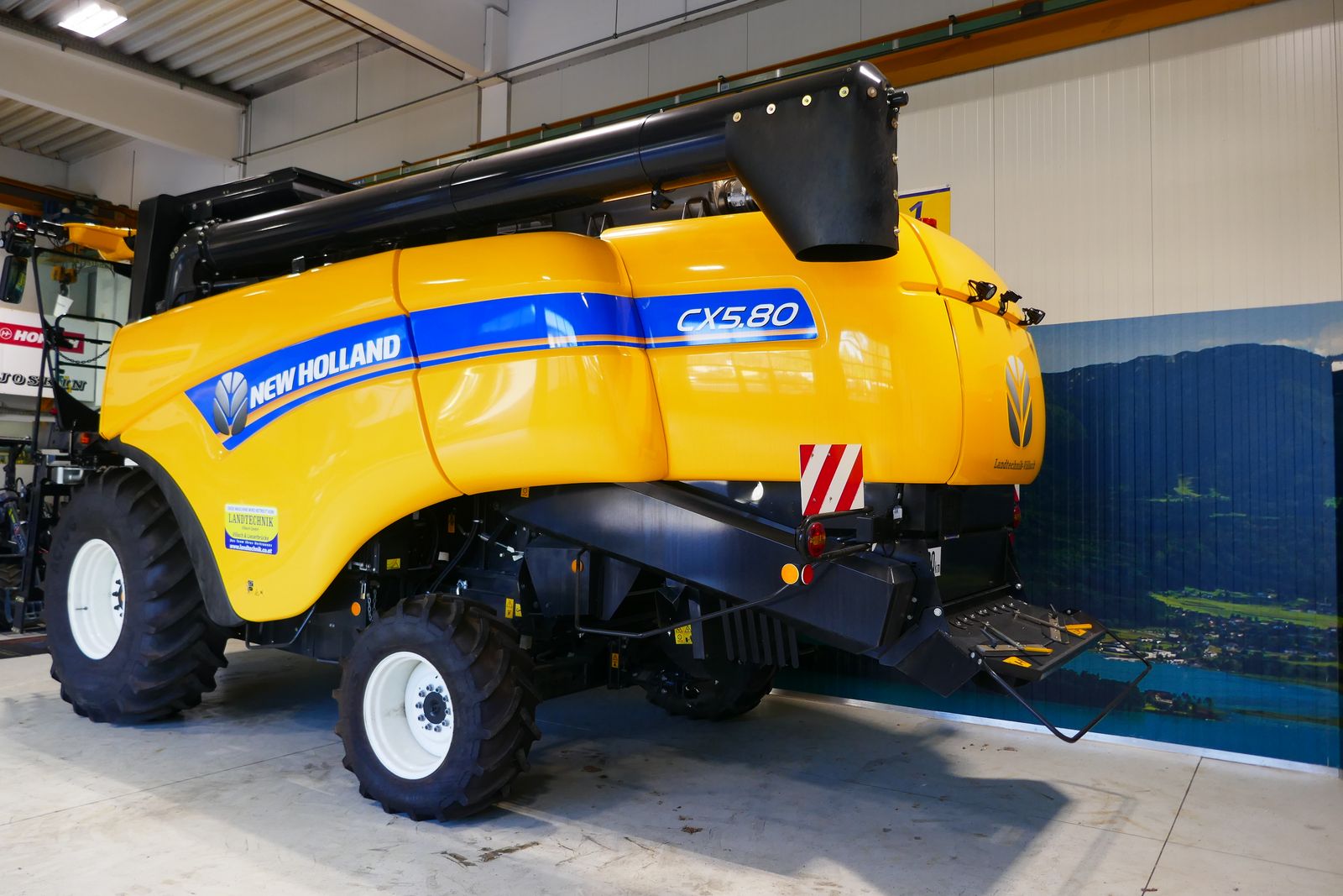 NH CX 5.80 Erstzulassung 2026, 5-Schüttler-Maschine, Allradausführung, mit 6-Zylinder FTP-Motor, Korntank: 8300 Liter, Auslaufrohr: 5,50 m, mit Strohhäcksler, Dreschtrommel mit sektionalen Dreschkörben und Zentrifugalabscheider, Zentrifugalabscheider mit Quatrotrommel, TripelClean Siebkasten mit SKH Smart Sieve, Feuchtemessung, Kabine mit 3-fach verstellbarer Lenksäule, elektrisch einklappbarerer rechter Außenspiegel, Heizung und Klimaautomatik, Bluetooth Radio, Kühlfach, DeLuxe Sitz, patentierter multifunktional Hebel, LED-Lichtpaket (12 LED-Scheinwerfer) und LED-Krontankbeleuchtung, 3 Rückfahrkameras, Antriebsachse mit Differenzialsperre, Bereifung: 680/85 R32 und 460/70 R24, Luftkompressor, Schneidwerksantrieb 3HB für Antrieb, Spurführungssystem ab Werk mit EZ Pilot Pro Antenne, Ausstellungsmaschine, Maschine ist prompt verfügbar.