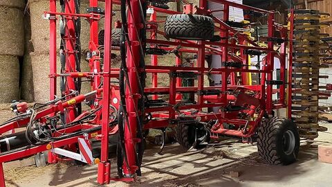 Zugdeichsel lang Unterlenkeranhängung Kat. 3 Druckluftbremsanlage Bereifung 500/50-17; 14PR Flotation TRACTION CONTROL System Druckfederzinken Einzeltasträder 340/55-16, Gänsefußschar DURASTAR PLUS Messerwalze 350-6000 Anbauteil Einfach-/Tandemwalze Tandem U-Profilwalze 600-6000 Randbleche zur seitlichen Wurfbegrenzung Einebnungsboard 6 m Nachlaufstriegel Tandemwalze Beleuchtung PLANO VT Maschine hat ca. 100ha gearbeitet