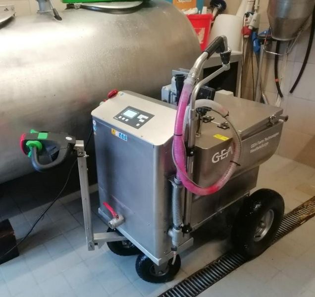 Förster Milchmobil 120 l gebraucht MDK4 - 380 V - in gutem Zustand 4,5 kw Heizleistung Grundausstattung: * Elektrischer Fahrantrieb mit Geschwindigkeitsstufen * komfortables Fahren in jedem Gelände * Höhenverstellbare und gefederte Deichsel mit Funktionswahltasten * Edelstahlausführung, 2 Gel Akku (24V), Ablaufhahn * Elektronisch gesteuerte Portionssteuerung mit frei wählbaren Portionsgrößen * Automatische Reinigung mit integrierter Reinigungsdüse * Mixer für Zubereitung von Milchaustauschertränke mit Intervallfunktion für Frischmilchfütterung (0,37kW) * LED- Lampe zum Ausleuchten der Fahrwege und Boxen (schwenkbar) * 4 robuste großvolumige Luftreifen * Intuitiv bedienbares Benutzerinterface * Temperaturabhängig gesteuerte Wasserbadheizung zur schonenden Erwärmung und Warmhaltung der Tränke * Verschließbarer Deckel mit Dichtung und Reinigungsdüse * Ablasshahn zuzüglich Frachtkosten