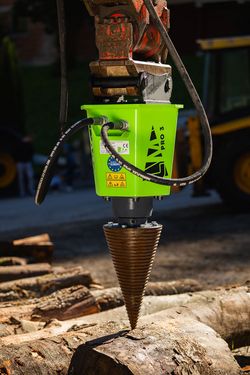 Kegelspalter mit Konsole für Rückewagen, ideal um lange Stämme zu spalten, Lieferbar für Bagger, Frontlader und Rückewagen bis Stammdurchmesser 1,5 m.