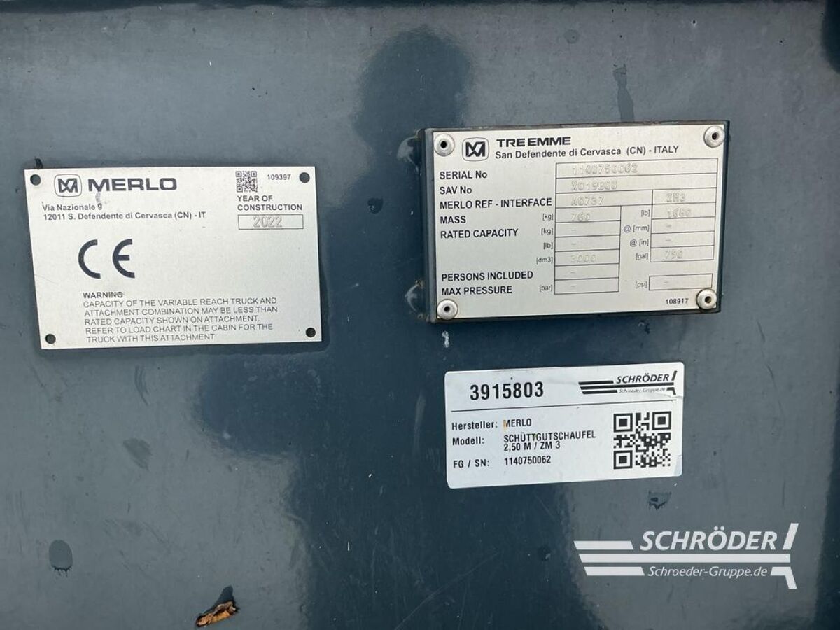 Inhalt: 3.000 Liter, Breite: 2.500 mm, 3fach Verriegelung, Merlo ZM 3-Aufnahme, Unterschraubmesser