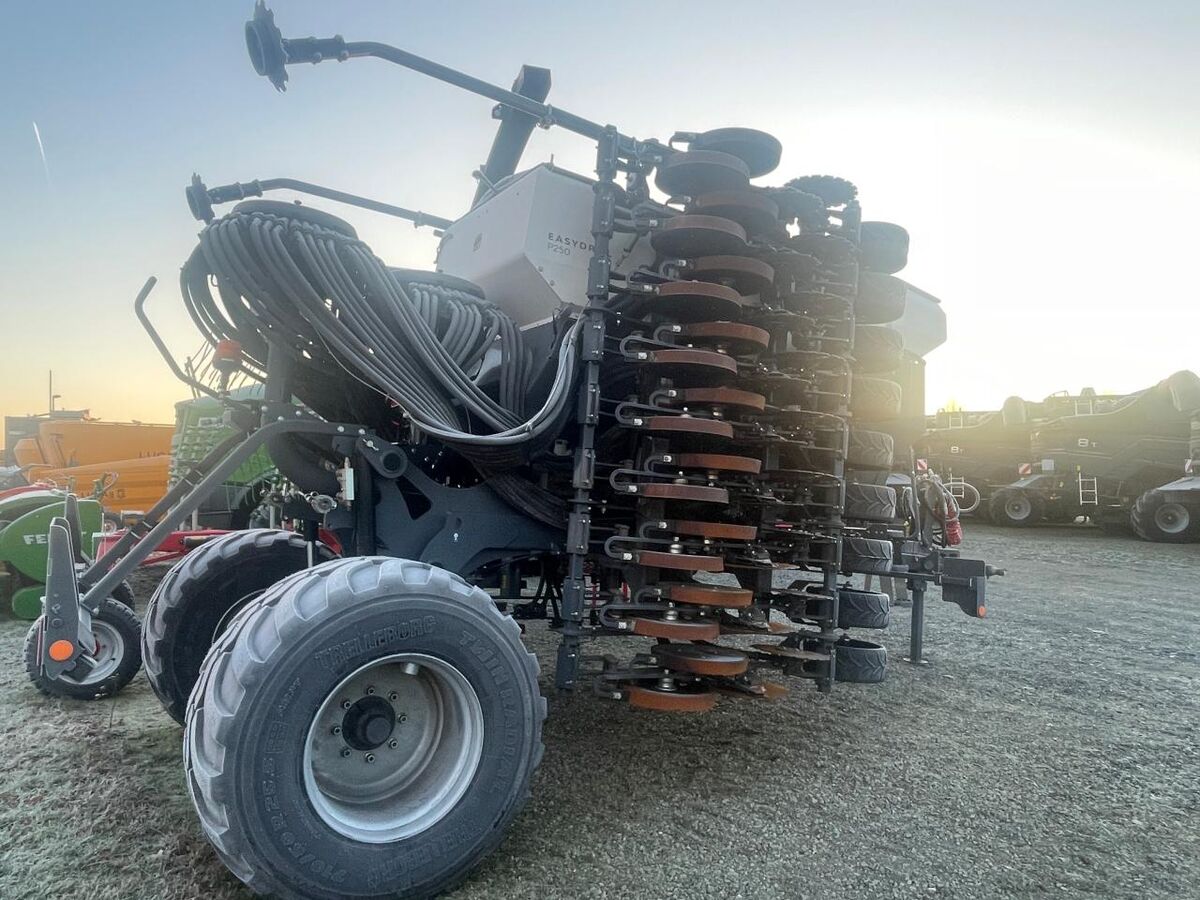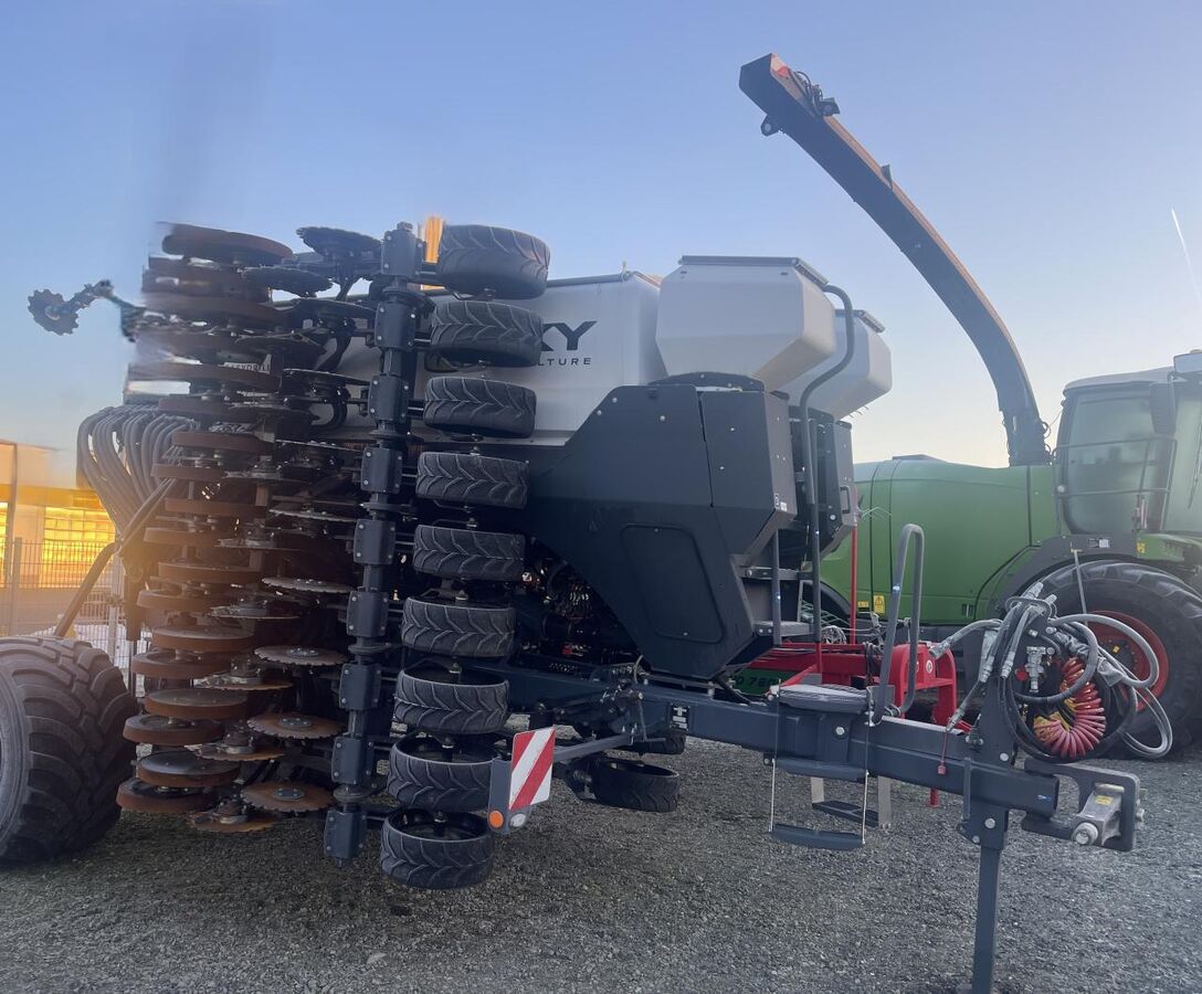 Reihen- / Körperabstand: 16,5 cm, Beladestufe, Hydraulische Klappung, Pneumatisch, Reihendüngerstreuer, Reihenstreuvorrichtung, Einscheibenschare, Kamera / Videoüberwachung ________ Fahrwerk, hydr. klappbar, Beleuchtung, Microgranulatstreuer, DL Bremse, Druckrollen, Stützfuß