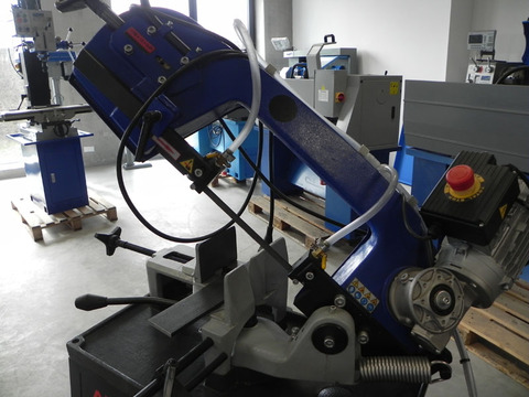 Ausstellungsmaschine -Das meist verkaufte Sägebandmodell in dieser Kategorie. Allgemein wird dieses Modell in Schlossereien, Maschinenwerkstätten und bei Montagen eingesetzt. Einfache Gehrungseinstellung im Bereich von 90° bis 60° rechts. Die Bandsäge kann man mit zwei Antriebstypen ausstatten. Hohe Schnittgenauigkeit und Sägebandstandzeiten garantiert dreiseitige Hartmetallführung in Führungswürfeln und eine robuste Lagerung aller Drehkomponenten. Die Bandsäge ist mit einem 1730x13×0,65 mm Sägeband bestückt.Ausgestattet mit Untergestell und Kühlung. Das Kühlungssystem ist im Untergestell untergebracht.SymbolfotoPreisänderungen vorbehalten, Irrtümer, Druck- und Satzfehler vorbehalten