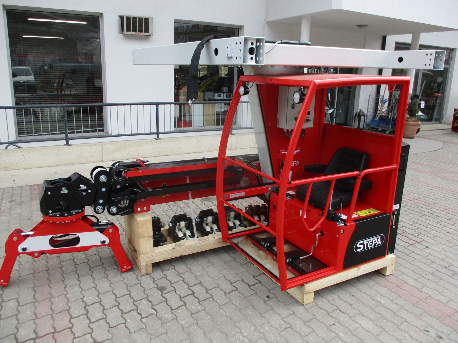 H3572B STEPA Heukran, Schoppeinrichtung, Rotator, sehr kompakte Ausführung!! 3-fach Teleskop, Reichweite 7,20m, Hubkraft 360kg auf 7,2m am Haken Spur 1,80m für IPE 220 Kranfahrwerk für IPE 220 mit 16 Laufrollen und 8 Spurrollen 2K-STD Komfortkabine mit Zweikreisaggregat 5,5kW - Super Silent Pumpe 16/12cm³ und 2K-ME mechanische Steuerung mit 2 Kreuzhebel und 2 Fußpedale RHS Rotations-Hochschwenk-System für Greifer mit Kugeldrehkranz RG 80 Rotationsgreifer kompl. 0,8m mit 4 Holzbodenzinken Sofort verfügbar Stahlschienen, Stromzuführung, Montage auf Anfrage Wir freuen uns auf Ihre Anfrage bzw. Besuch bei uns in der Firma