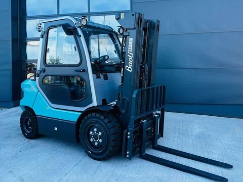 Bauart: Frontstapler / Dieselstapler, Tragkraft: 3200kg, Hubhöhe: 4750mm, Bauhöhe: 2300mm, Freihub: 1650mm, Gabellänge: 1150mm, Bereifung vorne: Superelastik Einfach , Bereifung hinten: Superelastik Einfach , Sonderausstattung: 3. Ventil, 4. Ventil, Arbeitsscheinwerfer hinten, Arbeitsscheinwerfer vorn, Dachabdeckung, Frontscheibe, Heizung, Vollkabine, Vollfreihub, Scheibenwischer, Sitz,