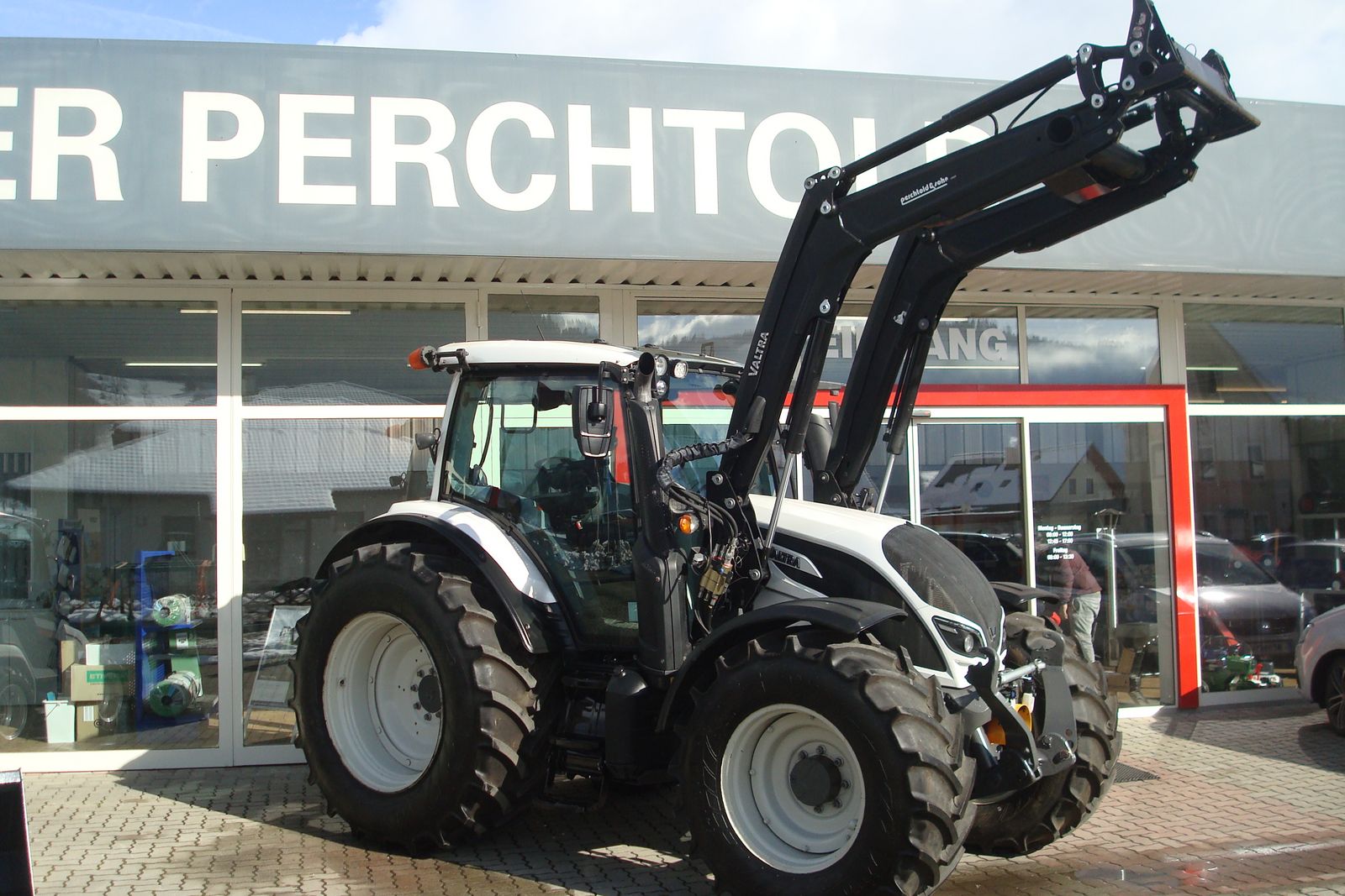 Valtra N134V SmartTouch + Fronthubwerk + Frontzapfwelle + neue Bereifung + gefederte Vorderachse + Weissmetallic Lackierung + Kabinenfederung + Hydraulikpumpe LoasSensing 160 L/min + 4 doppelwirkende Steuerventile Heck + Power Beyond Anschluß + 3 doppelwirkende Steuergeräte Front + 6/2 Wegeventil für Frontlader + ISOBUS Steckdose + Signalsteckdose + ABS Steckdose + hydraulisches Bremsventil + hydraulischer Oberlenker + Unterschutzplatte Stahl + Rundumkennleuchte links/rechts + Scheibenwischer Weitwinkel + Heckscheibenwischer + Luftgefederter Fahrersitz mit Sitzheizung + SmartTouch Armlehne mit Hydraulik-Joystick + Klimaautomatik + Panoramadach + Kontrollfunktion für elektrischen Motorstopp + Arbeitsscheinwerfer LED + Ventilschutz Räder + Frontlader G5L mit Softdrive und 3. Arbeitskreis, Euro Aufnahme
