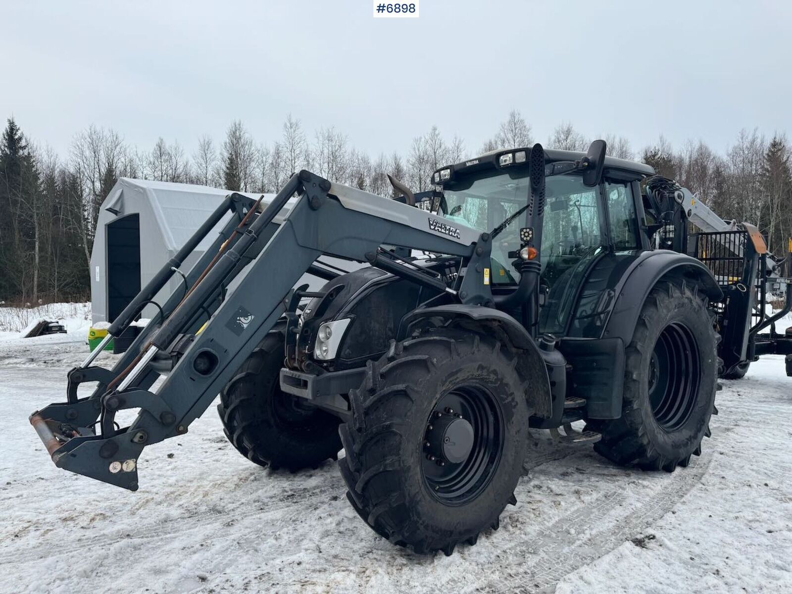 == Mer informasjon (NO) == mascus_category: tractors Please provide reference number upon request: 6898 See en.landbrukssalg.no/6898 for more images Specifications – tractor EU approved until 03.10.2027 Hours: approx. 4,700 Front tires: 480/70 R28 Rear tires: 580/70 R38 5 double hydraulic outlets rear Front loader 3rd function on loader 50 km/h TwinTrac Curb weight: 6,780 kg Power: 159 hp Climate control / AC Specifications – timber trailer Kesla 314 crane Crane reach: 7.1 m Electric crane control Crane load chart Load capacity: 10,000 kg Roller drive Tires (see photos) Curb weight: 4,210 kg Description 2013 Valtra N163 Direct with Kesla 114HD timber trailer.Primarily sold as a complete package but the timber trailer can be purchased separately if desired.The trailer is equipped with a Kesla 314 crane with 7.1 m reach.Available for delivery on short notice.See video!