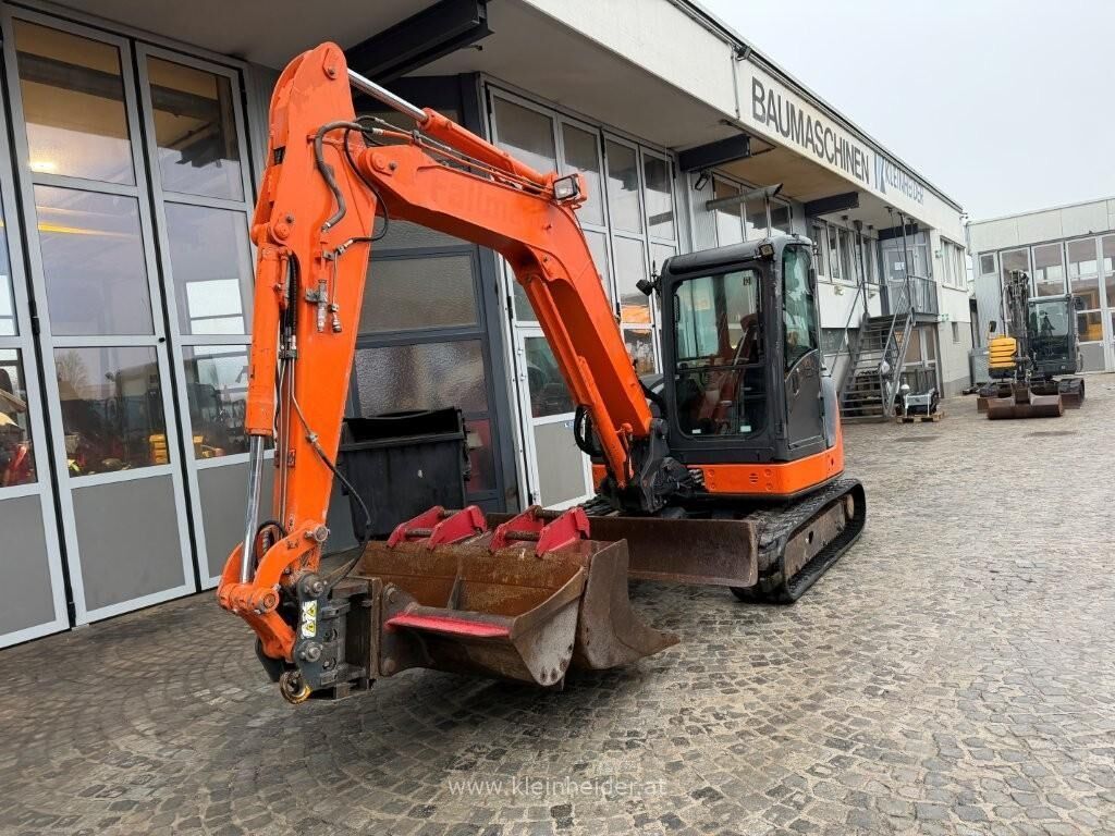8, 5 to Kurzheckbagger, Stahlkette mit Gummipads, Hammer-/Scherenverrohrung, mechanischer Schnellwechsler Winkelbauer, 3 Tieflöffel, 1 hydraulische Böschungslöffel En