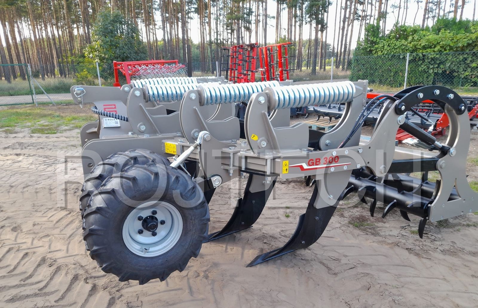 Untergrundlockerer mit NON STOP-Federsicherung, 3 Meter breit, 6 Zinken. Technische Daten : - Arbeitsbreite 3 Meter - Non-Stop-Federschutz - Anzahl Zähne: 6