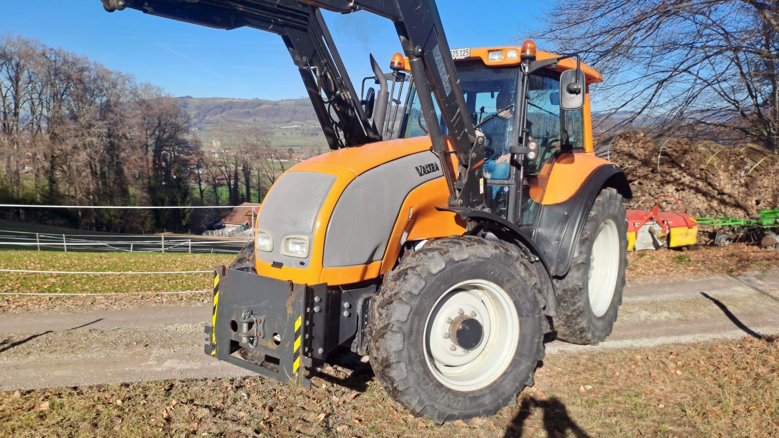 Valtra M 120 Traktor mit Frontlader Reifen sind nicht mehr viel Profil Fahrzeug betriebsbereit ab Platz direkt von Kunde Tracteurs Tracteurs agricoles