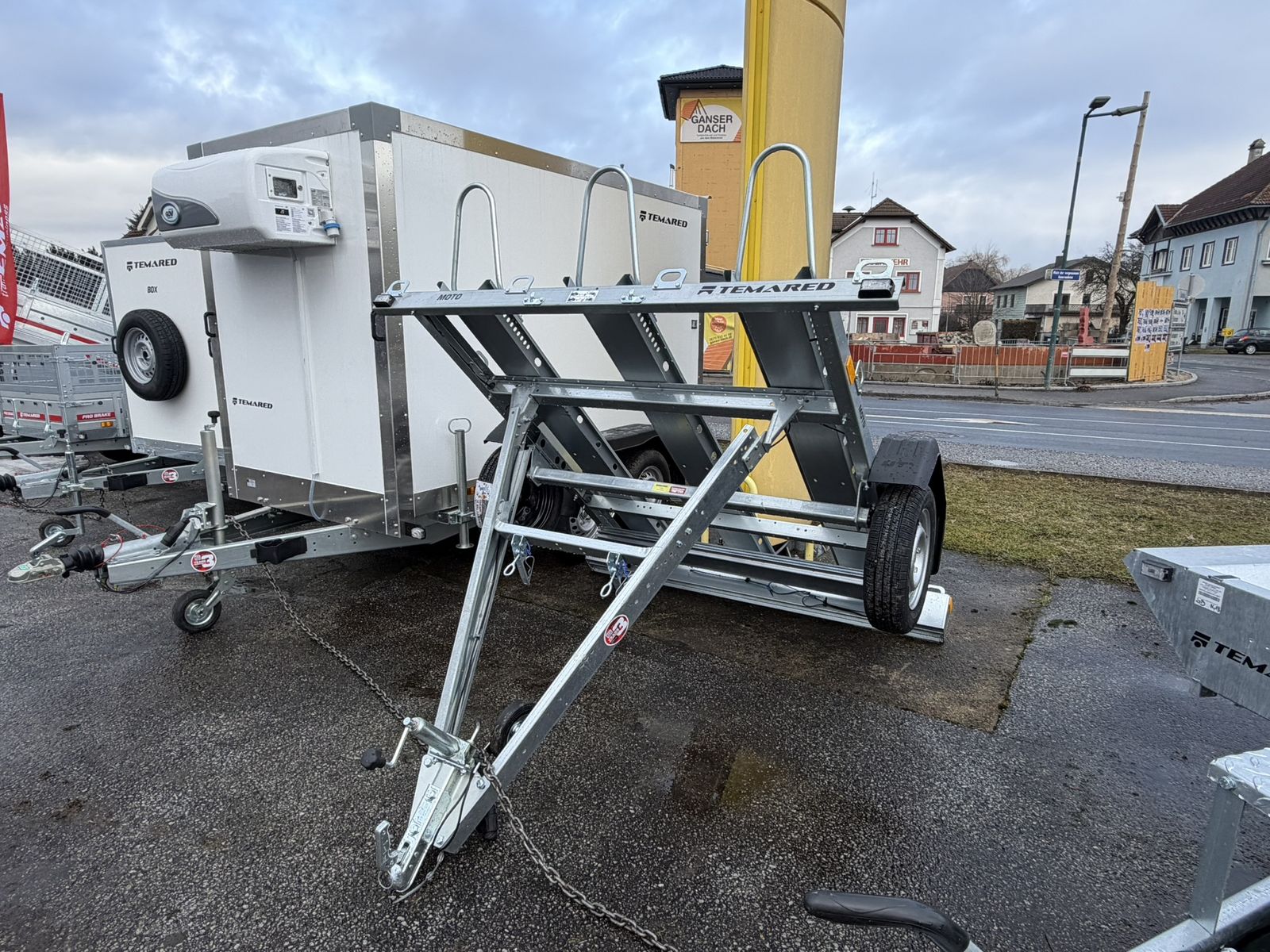 Spezialanhänger zum Transport von 3 Motorrädern, Für Wintereinstellung kippbar und platzsparend an Wand abstellbar Remorques Remorques de voitures