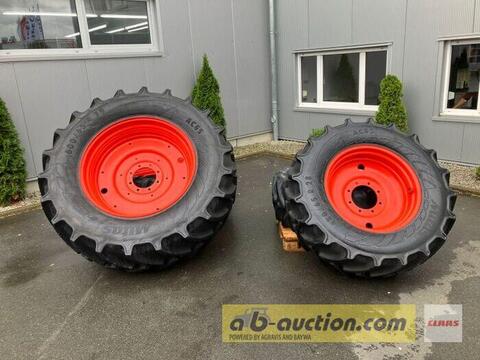 Wird am 25.03.2026 auf ab-auction.com versteigert: - CLAAS Komplettradsatz 480 / 65 R28 Mitas 600 / 65 R38 Mitas - VR 480 / 65 R28 Mitas: Felge W15x28; 8 Loch, Bolze