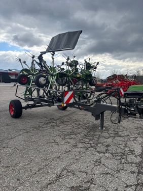 Der Kreiselheuer der renommierten Marke Pöttinger, Modell unbekannt, präsentiert sich als zuverlässiges landwirtschaftliches Arbeitsgerät mit solider Leistung und la